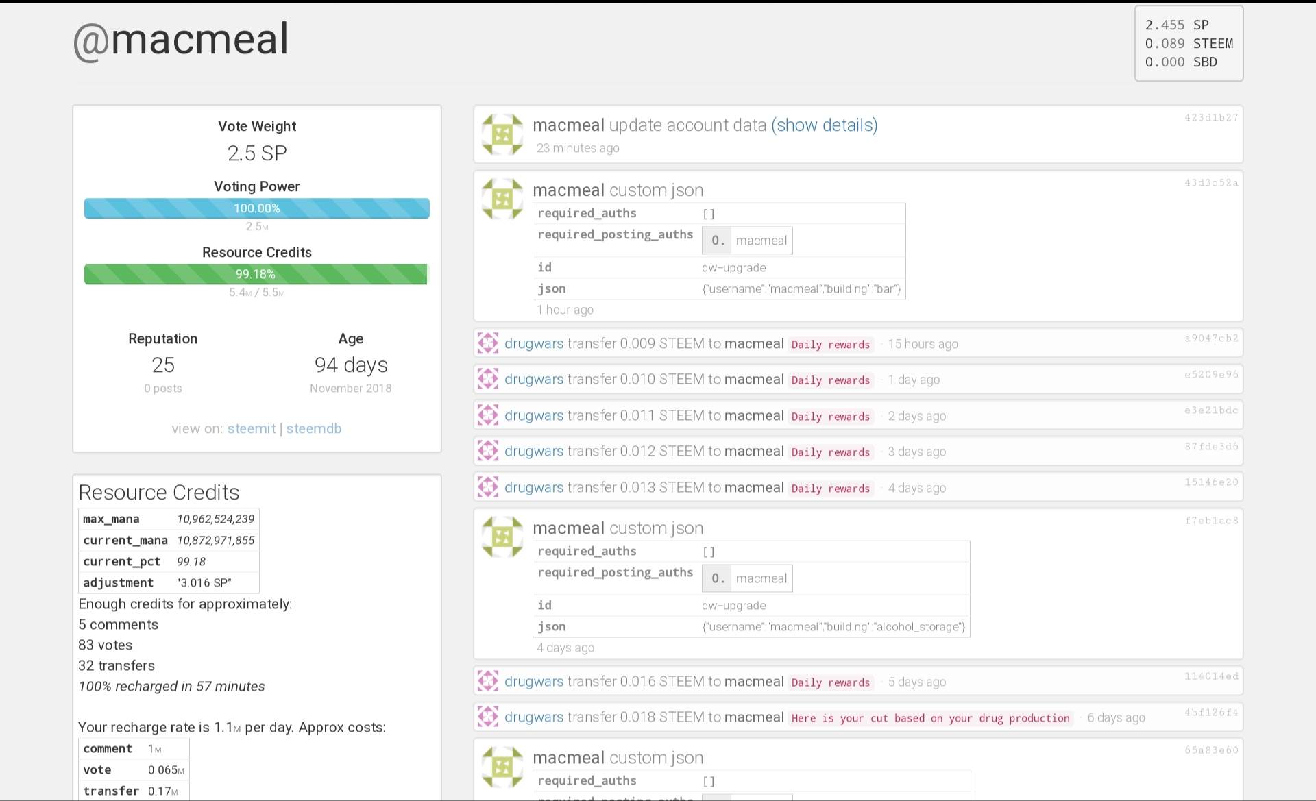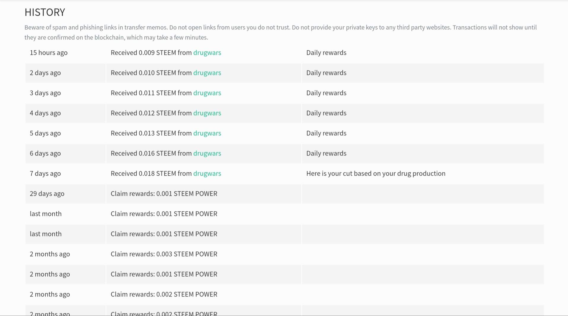 The thing now is drugwars I didn't invest anything in it so we will see what happens if you don't invest anything. here you are a payout of 0.009 steem a day without posting and doing anything