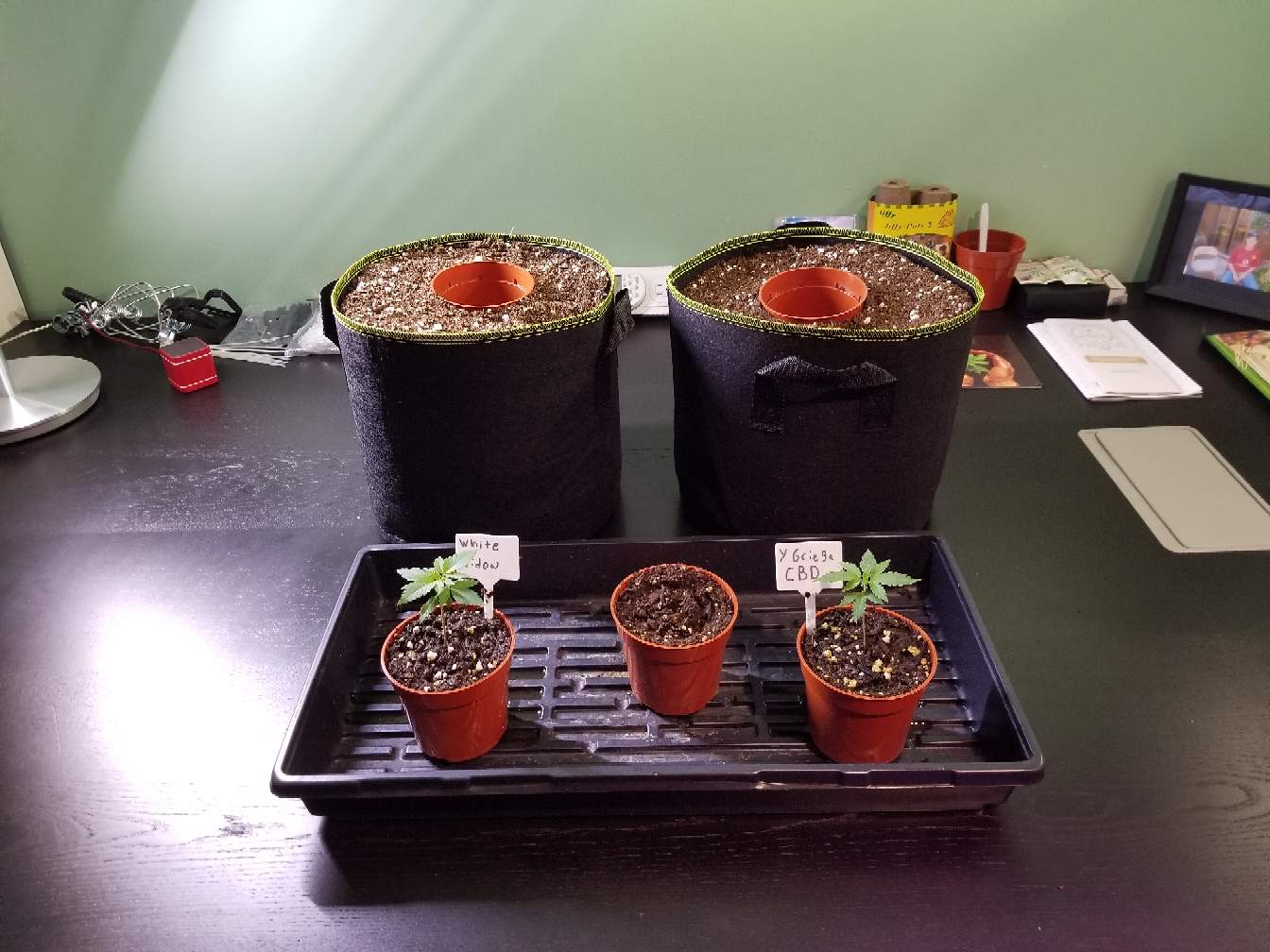 So I had to take a break from working on the bike yesterday when I noticed that's plants had drywall dust on them. I then inspected the extraction fan to see that I was covered in dust too. I had just moved them to under the stairs after the temperature swings from having them by the furnace where just too big. I vacuumed out under the stairs really good before moving them under there, so I figured it was being pulled from behind the drywall. I made the decision to move them once again knowing if I go into bud with drywall dust flying around it would not be good. I've now split my bedroom into 2 parts. After a full day of moving and whipping tents out and blowing all my lights and fans out the plants are happy again. I now have more room to move around and will have everything properly vented outside tonight and with everything finally moved I did the transplant on my seedlings. More pics to come as the plants grow😁😁 I'll be posting pictures tomorrow of the bike all back together too she could have used one more coat of paint but it still looks pretty sharp.