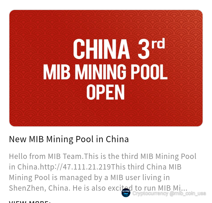 He is also excited to run MIB Mining Pool and his next plan is to make various promotions to invite more MIB users in China to join his Pool.