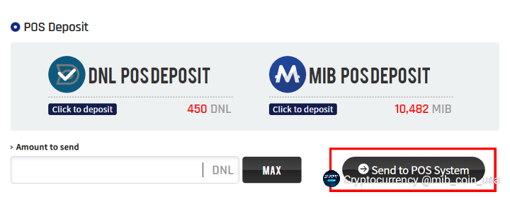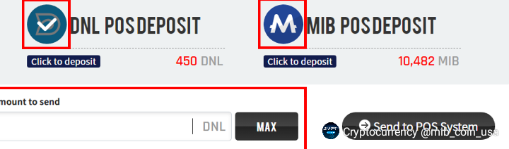 - Send to POS System You can send your amount of MIB or DNL to the POS system by clicking on the button. Airdrop will be handed out after 15 days pass from the day of your deposit.