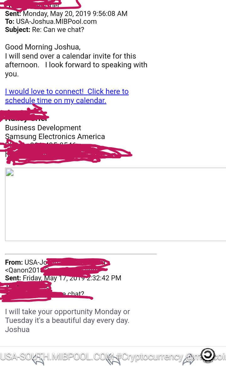 This will be the groundbreaking cryptocurrency platform that is INTEGRATED not unlike the Mobile INTEGRATED blockchain that we MIB Coin has no competition due to the closed source algorithm we have #smarthash that is 99.24% more efficient than any other platform in the market. The other claims such as #electroneum by CEO Richard Ells is the fact that they use an algorithm that is not setup like our platform. They use open sourced algorithms such as #XMR #cryptonight algorithm. This is what makes us unique in every aspect. Here is an email from #Samsung where the market that I am regionally focused USA has contacted me under business development.