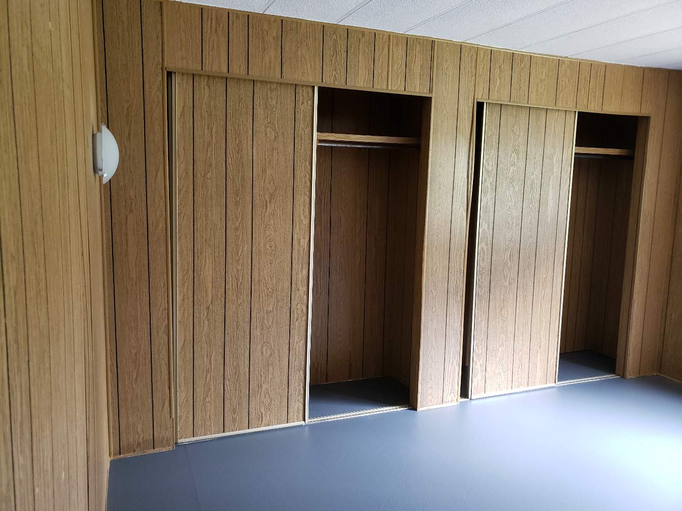 We decided not to paint the walls in this room. We took out the carpet, put a new light fixture up, painted the floor, and painted the ceiling.