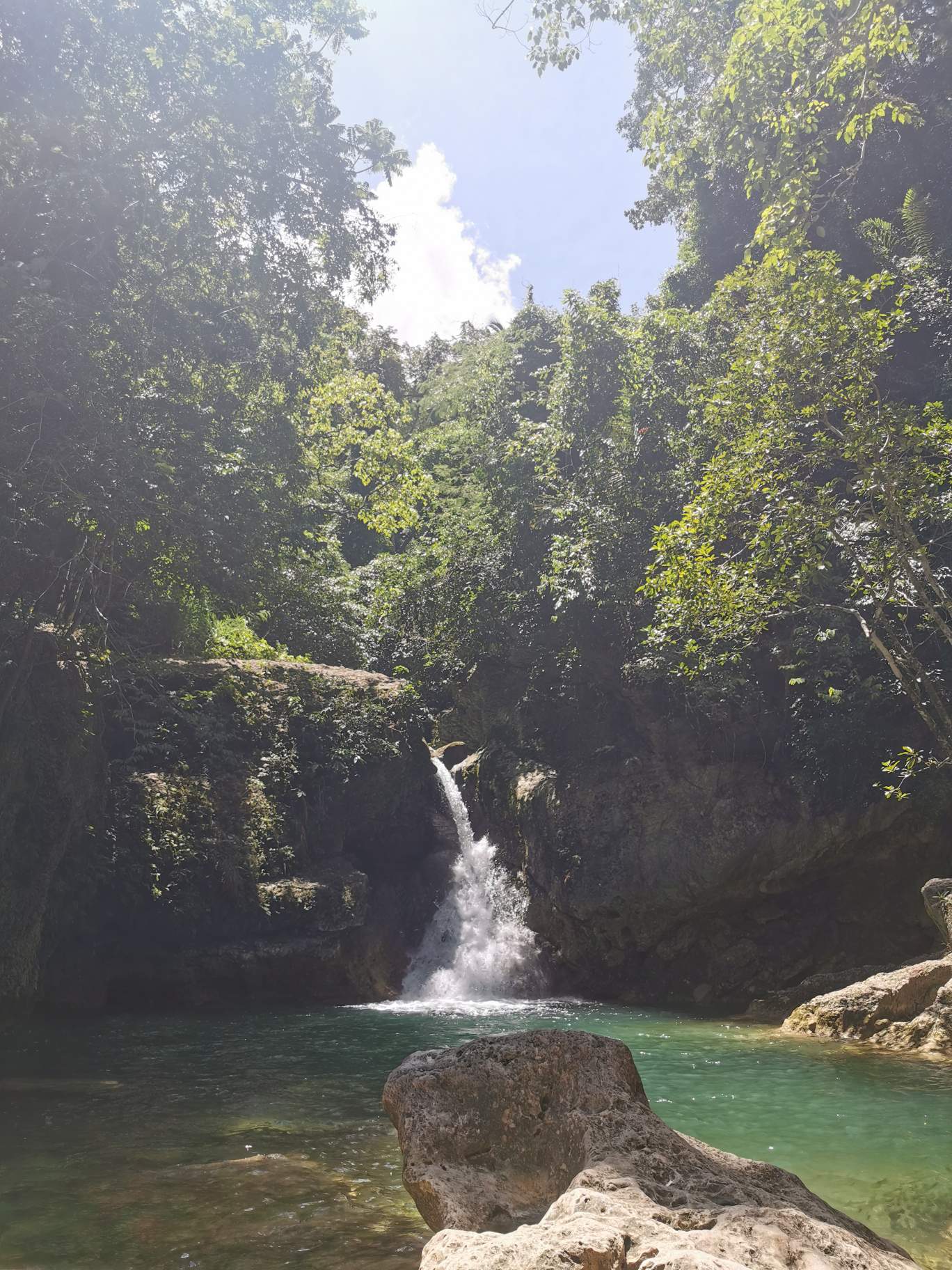 Hello. I visited another waterfall, Dam Agan is considered a secret place that only locals know about. And indeed, the road is not simple and google maps will not help you if you do not know which path to go there. Even to the trail on my Enduro, it was quite difficult to drive. The waterfall is 7 meters high and you can safely dive from it since the depth there is about 20 meters and there are underwater caves.