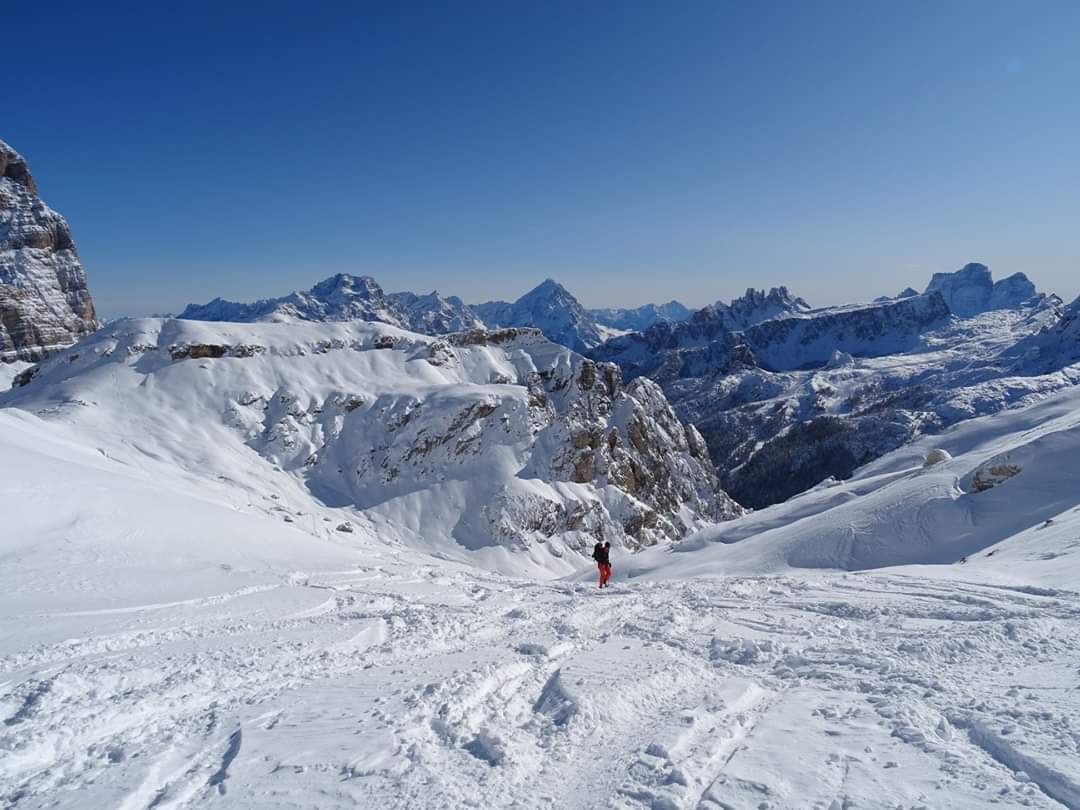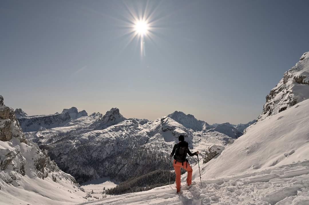 La mia escursione è avvenuta all'inizio della stagione invernale dove la neve fresca, il sole e tutte le funivie chiuse, hanno reso le condizioni perfette per salire su questa bellissima cima dove l'unico rumore che si sente è lo scricchiolio della neve sotto le ciaspole e che dopo una salita di alcune ore, puoi startene in cima per oltre un'ora condividendo tutto questo con il tuo compagno di vita e di avventura immersi in un silenzio surreale... ,qui ogni pensiero svanisce,solo una serie di lunghi sospiri contemplando questo mondo meraviglioso dall'alto….e come sempre non vorresti mai andartene!!!!