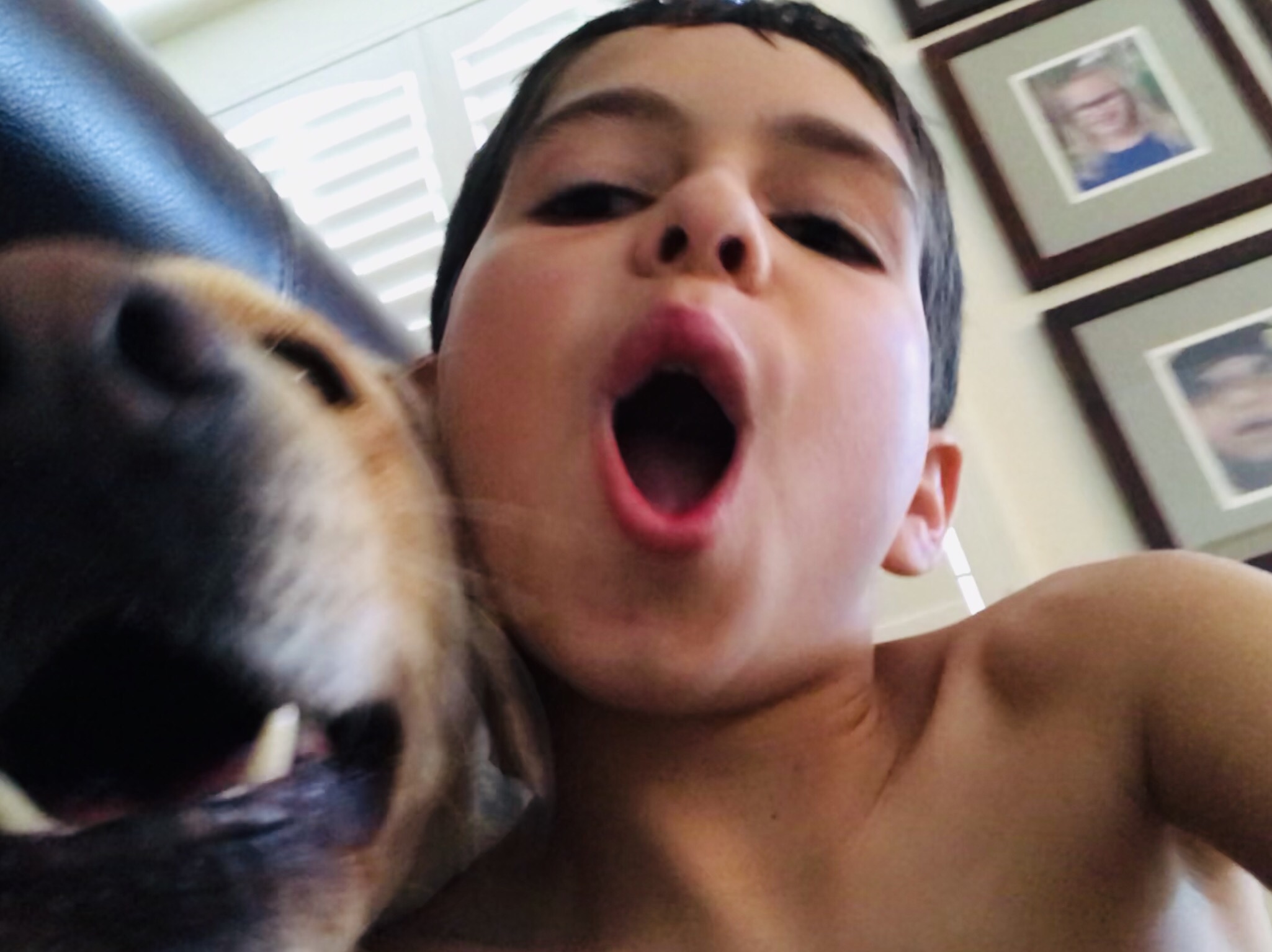 My dog (Lucky) just wouldn’t stay still! It took me about FIVE MINUTES to take this photo. He almost knocked my phone out of my hand! But I still love my dog.