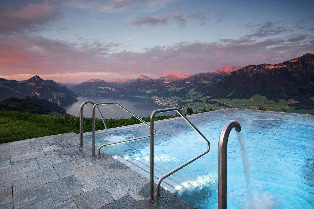 This beautiful romantic hotel is located high above lake Luzerne and has gorgeous View.