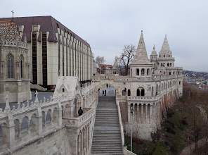 Fishermen's bastion is one of the best-known sights of Budapest,and one of the symbols of the city . Its name can be explained by the tradition that its defense was the responsibility of the guild of fishermen,but it is more likely that it derived its name from the part of the town under it which was called the "Town of Fishermen". The Northern side of the wall-in the place of today's biggest tower-was closed down by a footpath and a staircase connecting the town to Castle. This was used by fishermen going to the fish market and Laszlo Hunyadi tried to escape from his prison through it in 1456. The section of the Castle wall,which is called the Fisherman's Bastion,was rebuilt according to the most modern principles of defence. When it cease to be a fortress after 1874 several plans were made to rebuild this section of the wall with bricks. The occasion came in the 1890s when Matthias Church was rebuilt and a pleasant neighborhood had to be made, worthy of the beautiful building. So the re-builder of the church,Frigyes Schulek desigend a neo-Gothic building onto the medieval town walls.