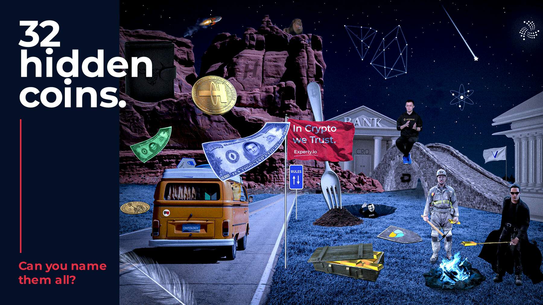 This question is from Experty. Recently I have joined an Experty event. I think about this puzzle and found the result from my own research that should be Bitcoin, StarCoin, Experty, HedgeTrade, Coin Lion, DASH, BULL, Rocket Pool, Tether, Ontology, Chainlink, Ethereum, Ethereum classic, maker, Doge, stellar, BCH, bsv, Xmr, Nem, bnb, Cro, Neo, VeChain, eos, Iota,Atom, Tron, Zrx, Feathercoin,Hyt, Matic. What do you think that my answer correct or wrong?