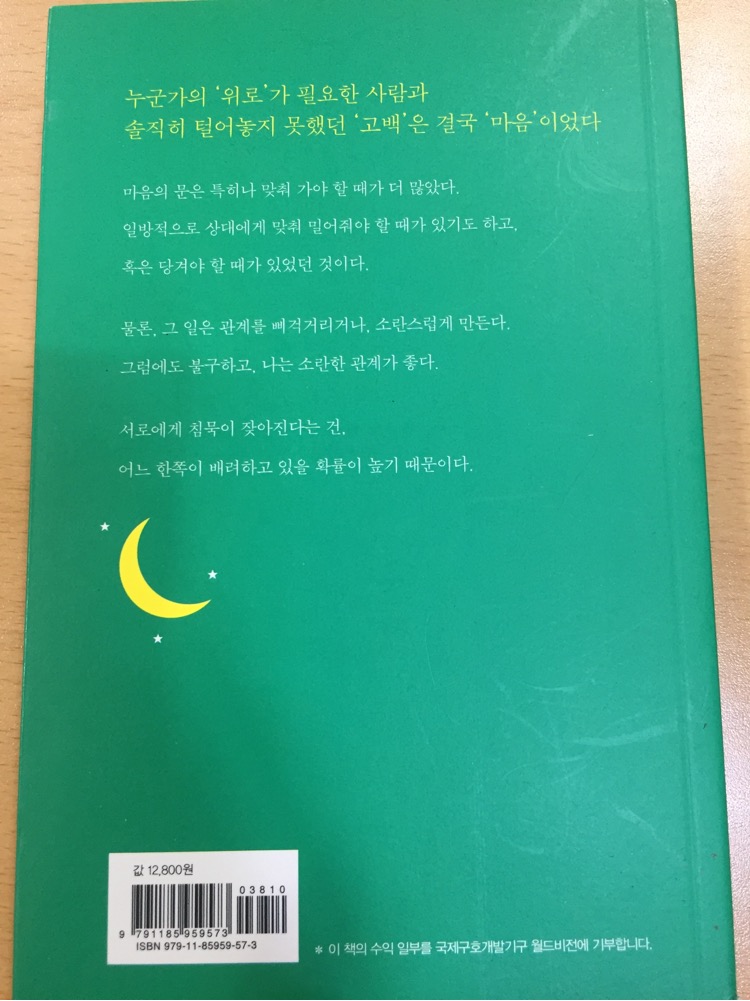 이 책은 친구의 추천으로 보고있던 책이다 한번에 볼 수 있는 책이고 가끔은 나의 기분, 나의 마음, 나의 생각을 공감해주고 말해주는 것 같은 책!