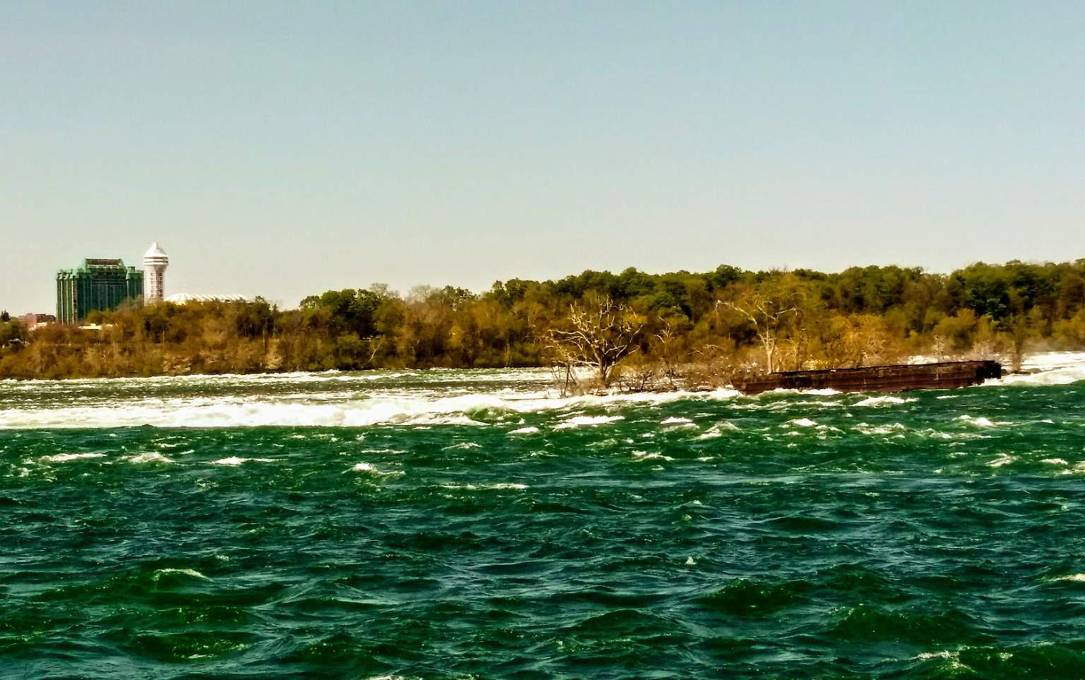 This little boat came apart from it's tugboat about 100 years ago. It's maybe 200 yards from the top of the falls. When it got loose, the two guys had the sense to bust a hole in the bottom and sink the boat. It was an all night rescue effort to get them from the boat to the shore, but they both lived. Pretty cool the boat is still there.