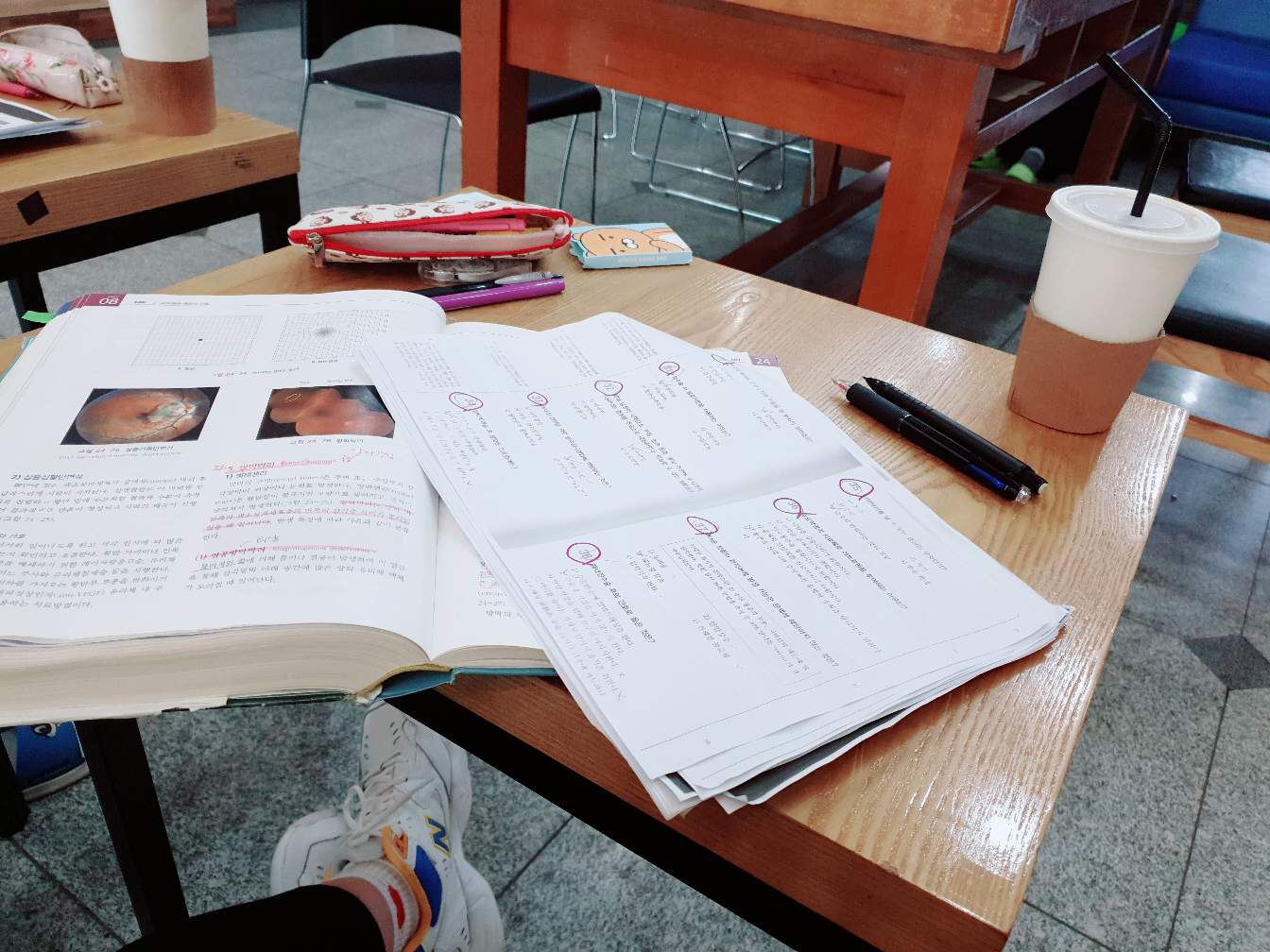 기말고사 마지막과목 공부중,, 감기는 눈을 억지로 부여잡고 새벽에 일어나서 하겠다는 나의 의지를 믿지못하여 일일교수님 @niceham 찌니와 함께 도서관으로 아메리카노와 함께 총총.. 여성,정신에 뭉개진 내 멘탈을 꼭꼭 접어서 잠시 주머니에 넣어놓고,! 성인간호 공부한 후 집가서 여성의학용어 다시 공부!