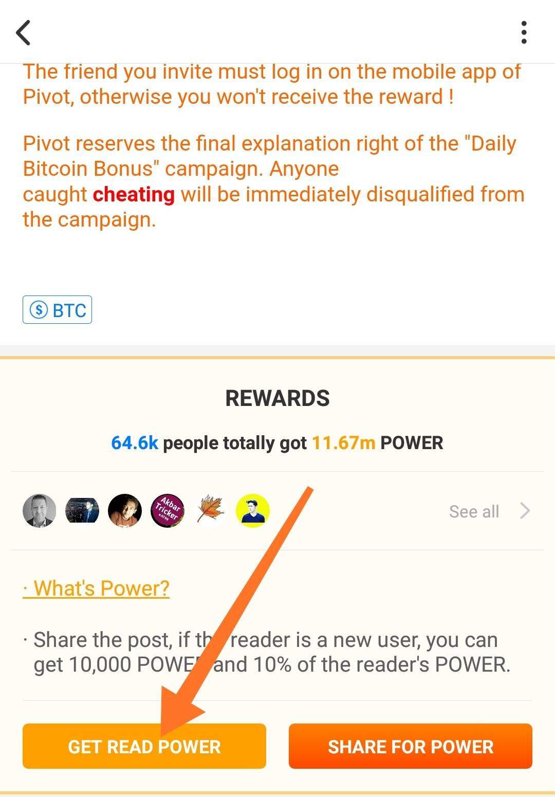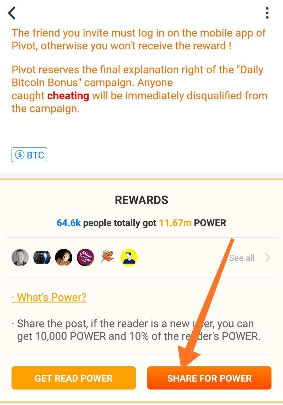 IMPORTANT: The reader of the post that you share must log in on the mobile app of Pivot, otherwise you won't receive the reward !