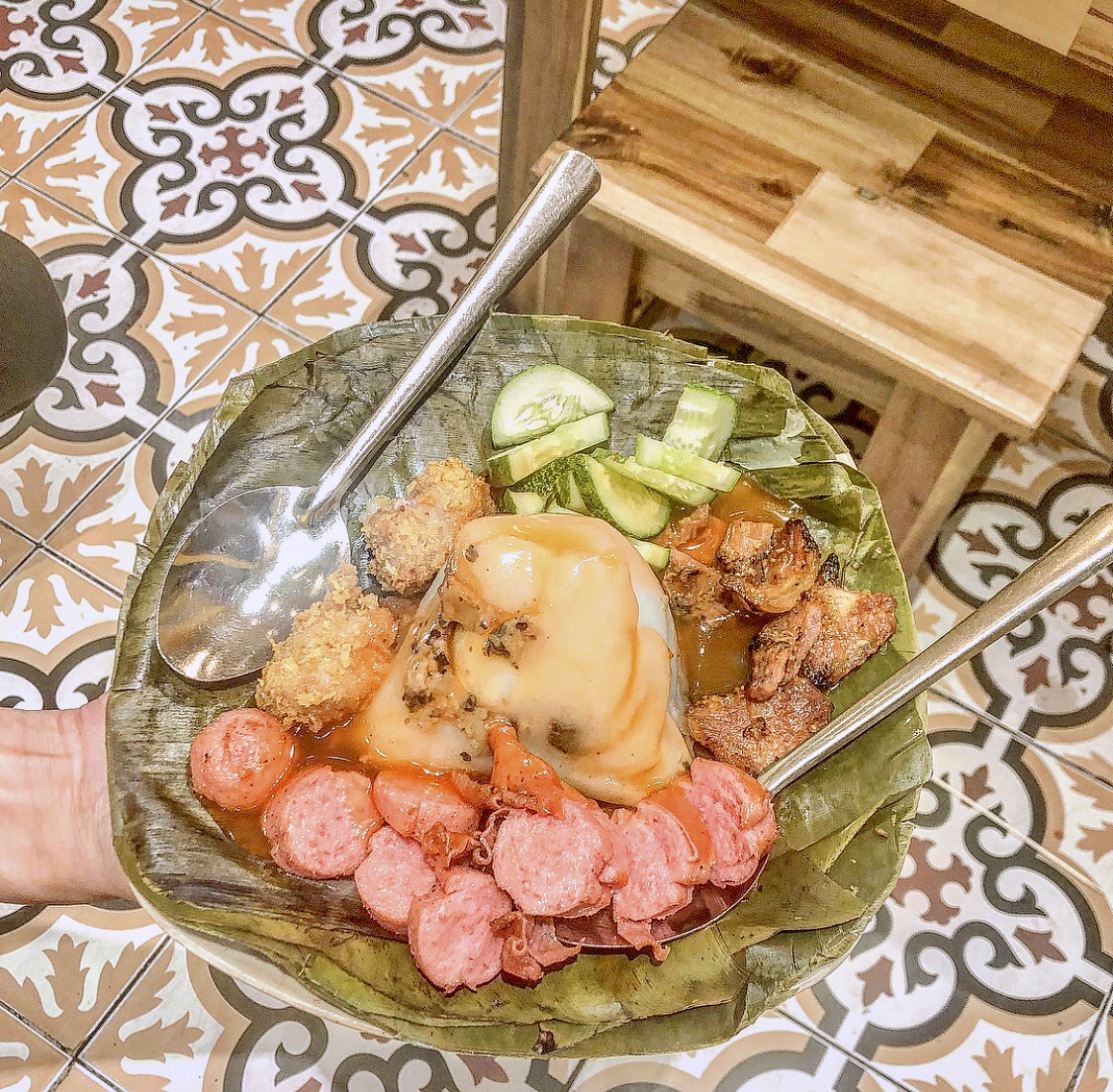 Lets take a look at this pyramic Vietnam rice dumpling. Coming with grilled meat, sausages, cucumber, fried fermented pork sausage and their special sauces make it really touch my taste and eyes.