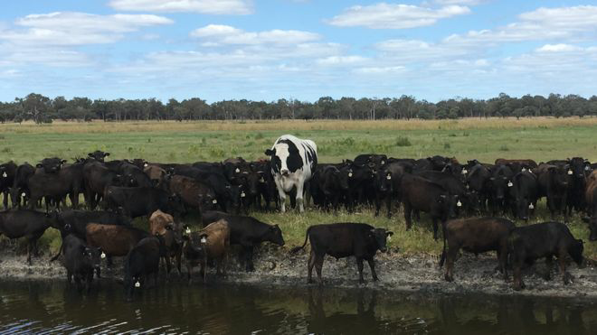 Knickers, 194cm-siab, 1,400kg-hnyav Holstein Friesian ho, ua qhov kev sib tham hauv internet no ob peb hnub tom qab cov duab uas nws tho qhov hnov ntawm Wagyu nyuj rau ib thaj teb hauv Myalup, Australia tau kis tus kab mob. Nws ntsia zoo li loj tshaj rau lwm cov nyuj uas ntau tus neeg pib nug yog tias nws yog tiag, los yog cia li tshwm ntawm kev yees duab editing.