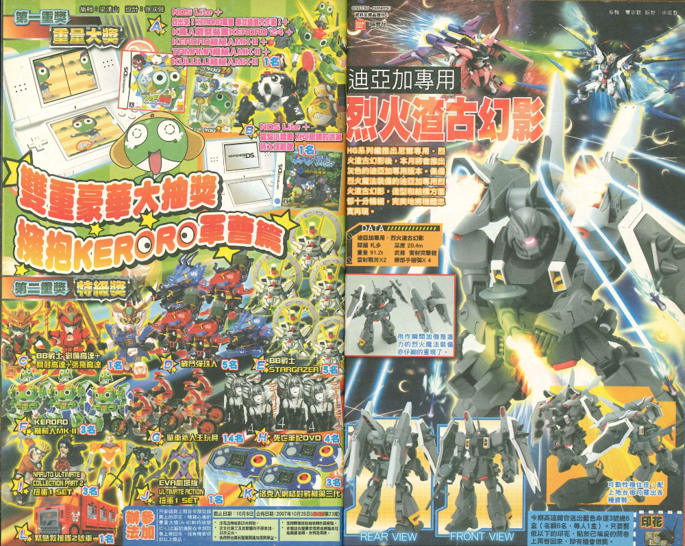 玩具的種類相當多,最常見的有扭蛋、高達模型、四驅車、搖搖、變形金剛等等,但間中也有一些新奇產品,如某期經常要介紹NERF玩具槍,那時編輯部就經常會出現槍林彈雨的景況(笑)。