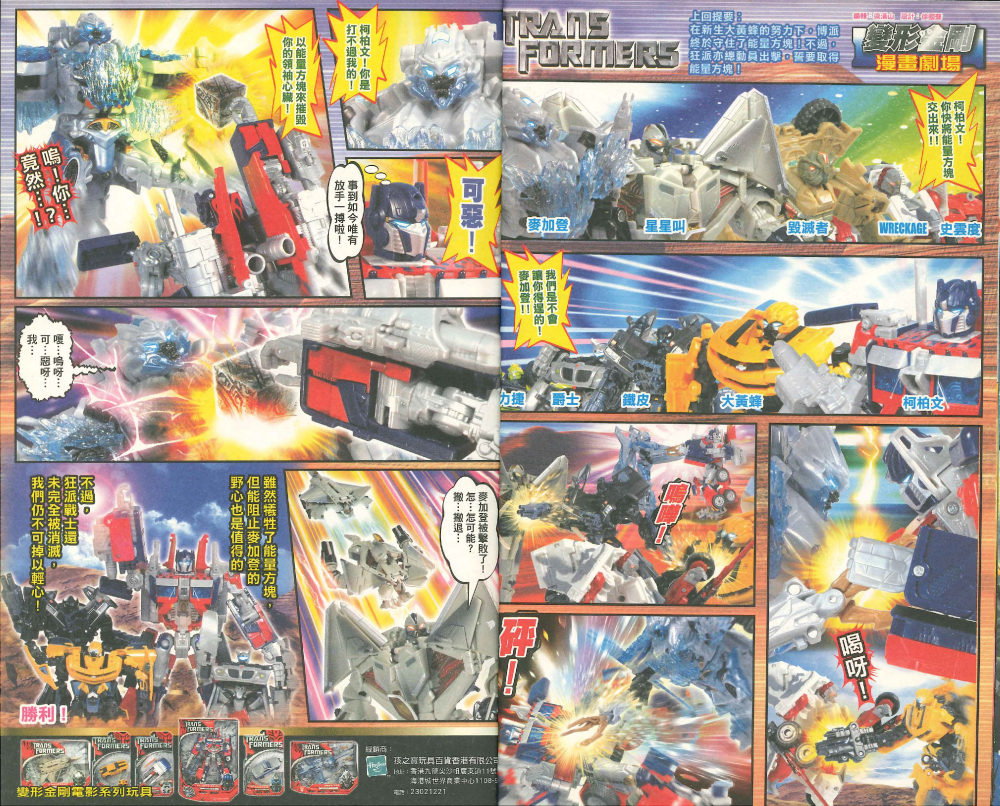 為了這次企劃(每期兩版彩頁),我要先構思故事,再麻煩另一位懂漫畫分鏡的編輯起漫畫草稿。然後按照草稿,指導artist拍攝玩具不同角度,有時還要即場極速變形後,再拍玩具的不同造型,最後再交由artist加入特效。