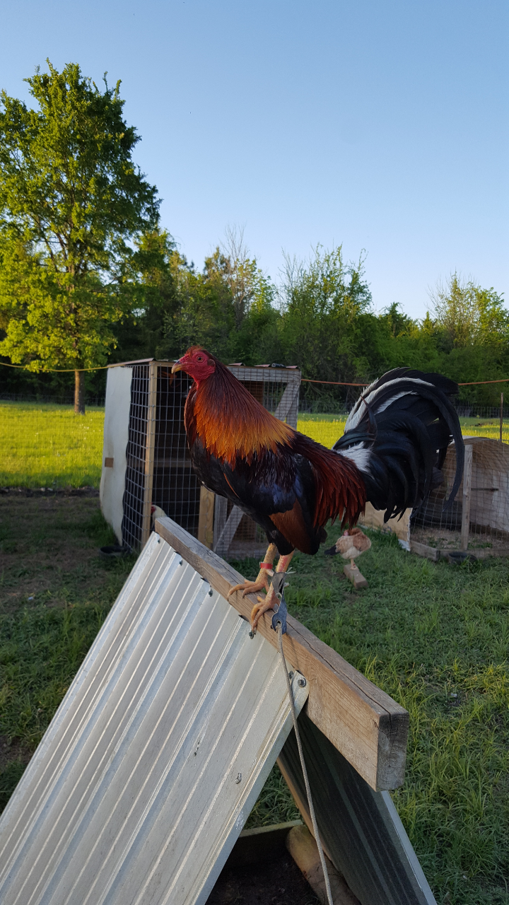 These are good roosters the red one is a radio and he is 2 the other one is a gray and he is 3.