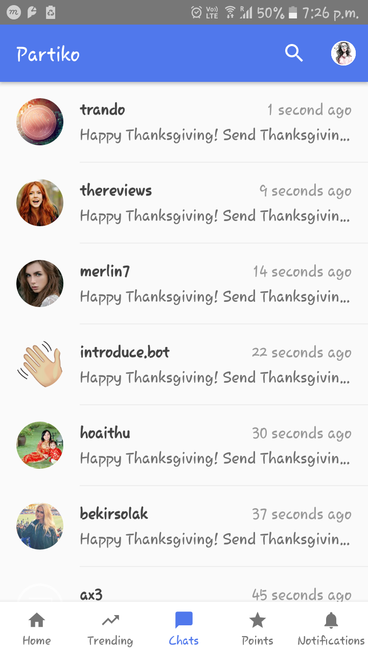 Send Thanksgiving Message to your 5 Partiko Friends