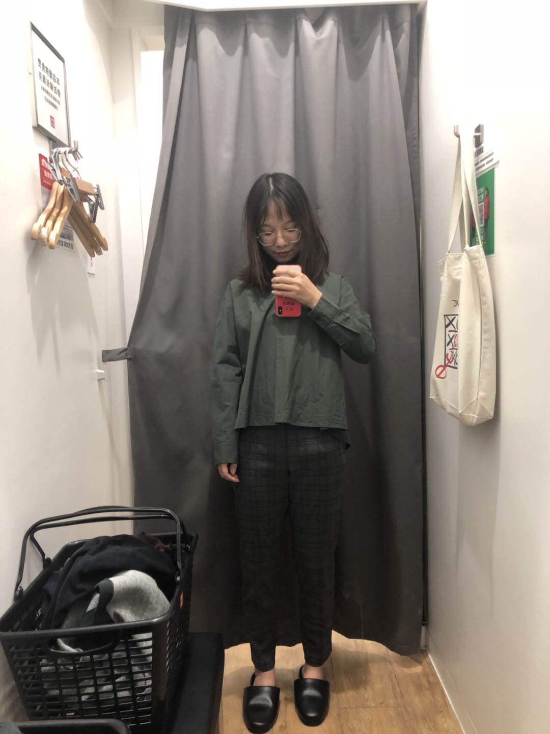 优衣库的这款衬衫真的很大,穿上去松松垮垮的,版型还不错,比较适合上身有肉的人穿,显瘦。长裤很舒服,格子的元素不太容易过时。