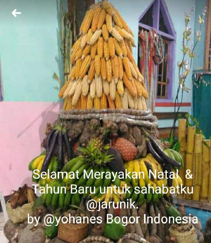 Foto special diatas merupakan kiriman dari sahabat saya dr Timor Leste tahun yang melalui akun FB. yang kemudian saya edit menjadi foto yang antik dengan menu jagung dan buah - buahan.dahulu sahabatku tinggal di Indonesia karena sekarang Timor -timor telah berubah menjadi negara sendiri yaitu berubah menjadi Timor leste.namun persahabatan akan tetap langgeng walau via FB. dan saya kirim pula photo kreasi saya miniatur natal yang terbuat dari tumpukan / susunan bubur jagung yang saya buat sendiri tadi pagi. special untuk @jarunik.