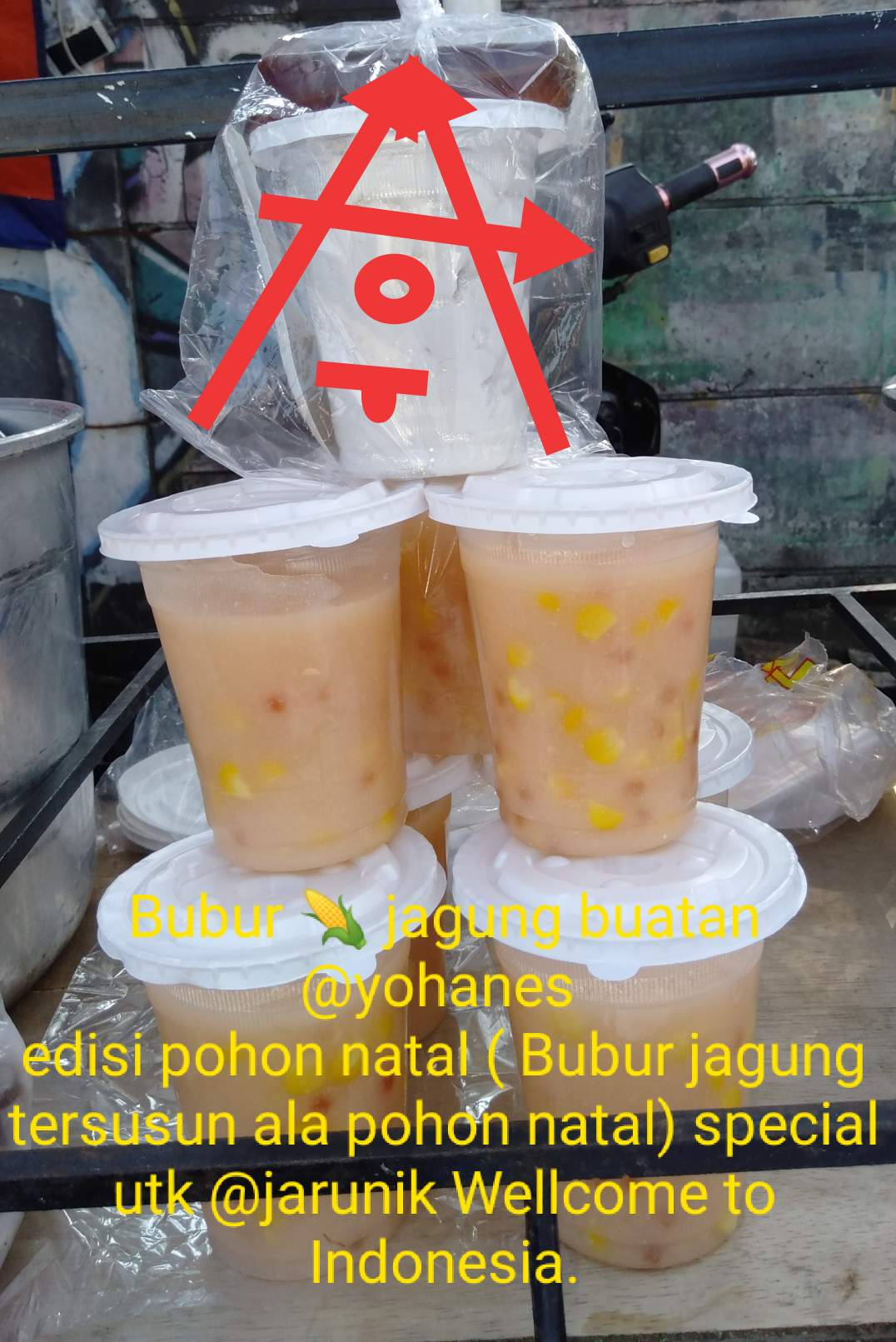 sayangnya jarak sangat jauh yang memisahkan wilayah negaraku dan negara @jarunik membutuhkan waktu apabila dikirim via paket tiki atau sejenisnya pun bubur ini akan cepat basi(rusak)..yah sudahlah saya kirim lewat akun steemit saja walaupun tidak bisa merasakan langsung kelezatan bubur jagung buatku (@yohanes)tapi saya percaya dan yakin suatu saat @jarunik mau bersinggah ke indonesia agar bisa mencicipi dan menikmati bubur jagung buatan ku. semoga kiriman gambar ini menyenangkan hati @jarunik juga warga Nasrani di seluruh Indonesia dan dunia.