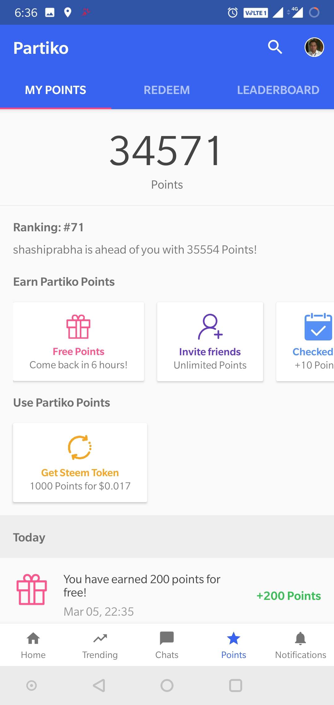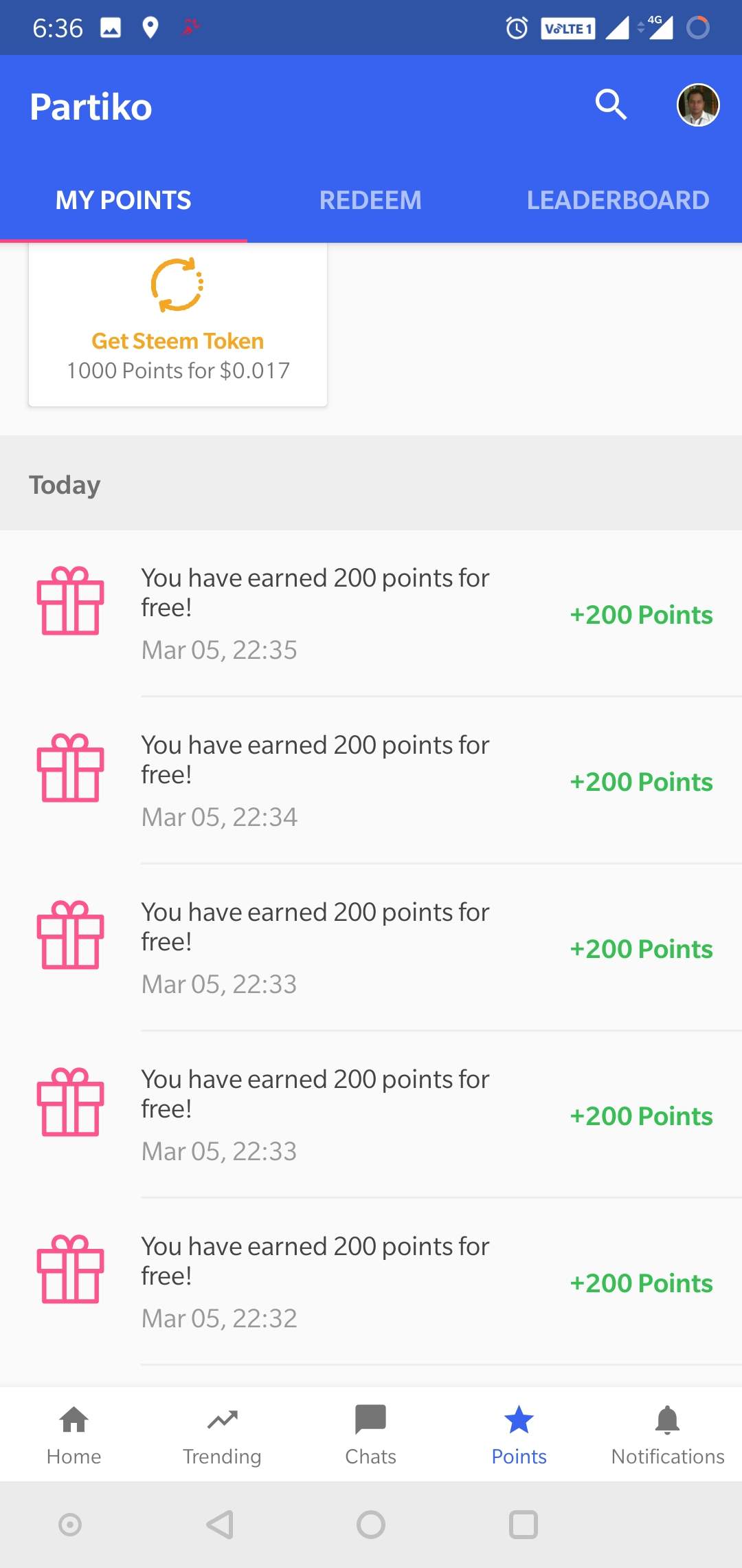 I am excited to share that I have got 1000 Partiko points just by watching 5 videos of 20 seconds each. This is just superb and I am very much excited about this initiative by @partiko app team.