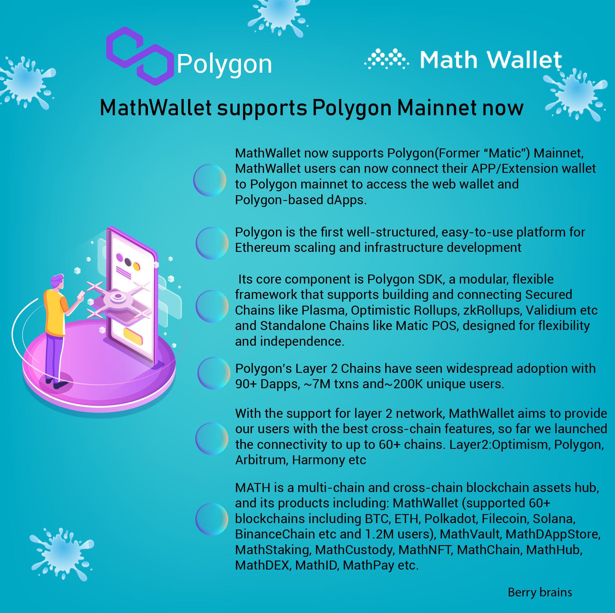 Math wallet now supports Polygon mainnetberrybrains (25)in #partnership • 5 years ago MathWallet now supports #Polygon Mainnet Users of MathWallet can now connect their app wallet or extension wallet to Polygon Mainnet and access all Polygon-based DApps. Learn More in the attached infographic! #polygon