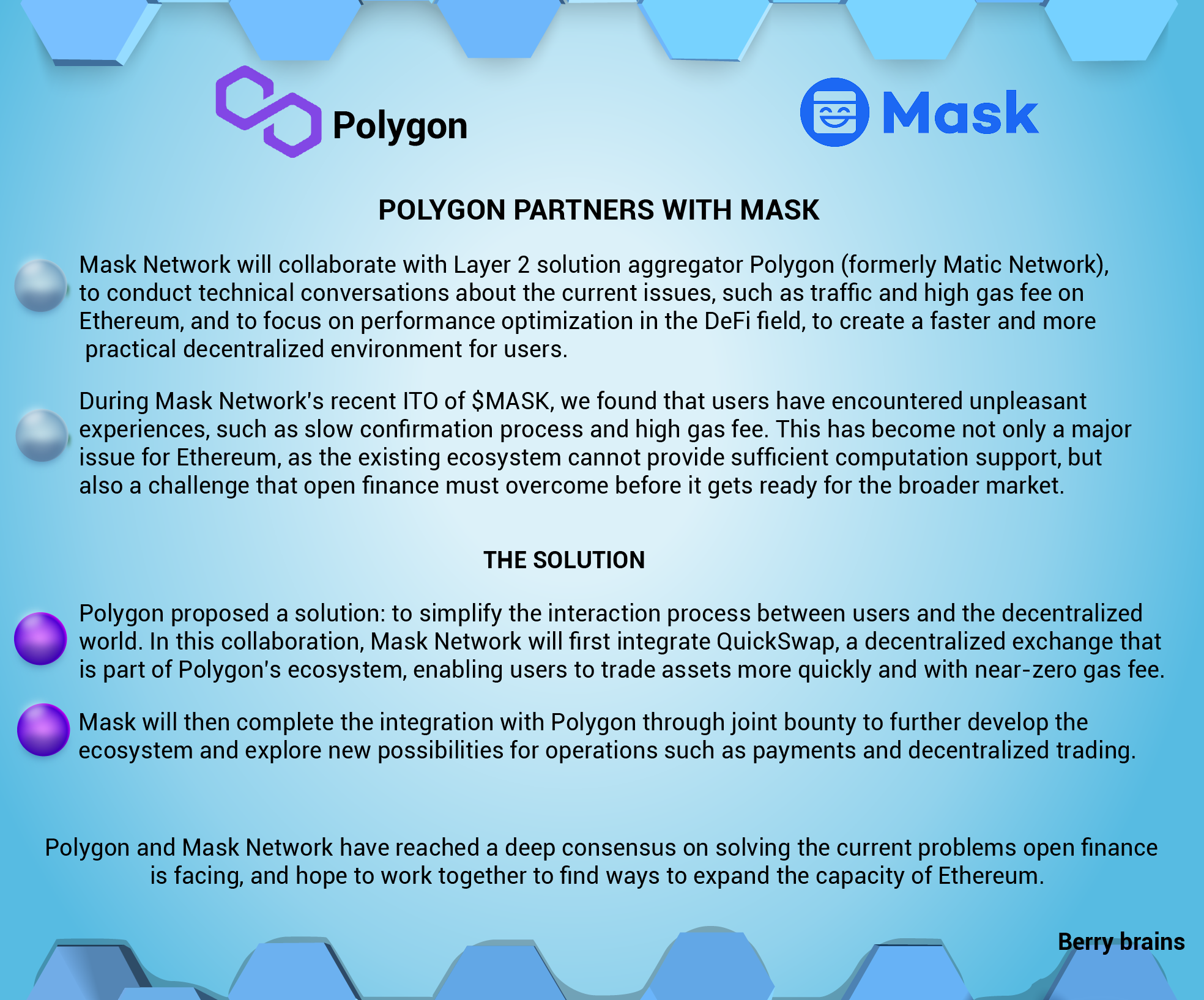 Polygon partners with Maskberrybrains (25)in #partnership • 5 years ago To facilitate the adoption of a new open Internet, Polygon collaborates with Mask Learn about the benefits of this partnership in the attached infographic.