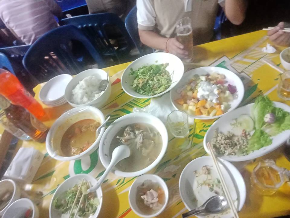 สังเกดได้ว่าโตะเราจะมีแต่ผู้ชายเพราะใน ออฟฟิดเราจะมีแต่ผู้ชาย ถ่ายรูปเรียบร้อยแล้วก่อลงมือเลยคะ ไม่ต้องรอเปีดพิที กินก่อนเลยเพราะหิวมาก กินเสร็จ ค่อยดื่มเบย อาหาร ร้านเขาอร่อยมาก บรรยากาศก่อดี เย็นสบาย เป็นค่ำคืนที่ สนุก มาก หลังจากกินข้าวเสร็จเจ้าของโรงแรมกล่าวขอบคุณพะนักงาน รายกานก่อไปก่อเป็นกานแข่งขันร้องเพลง