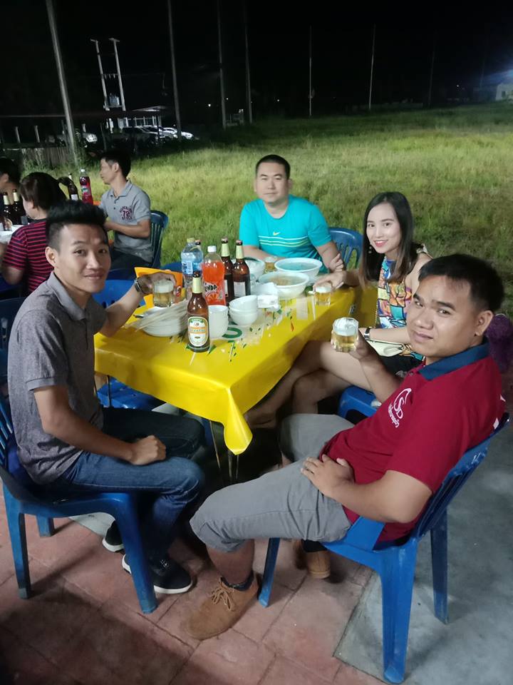 พอแข่งเสร็จ ตอนค่ำจะมีงานเลี้ยง กินเข้าสามักคี ให้พะนักงานได้ ดื่มพูดคุยส้างสันกัน พอเรามาถืงงานปุบสิ่่งแรกเลยคือถ่ายรูปก่อนเก็บรูปไว้เปันความชงจำ