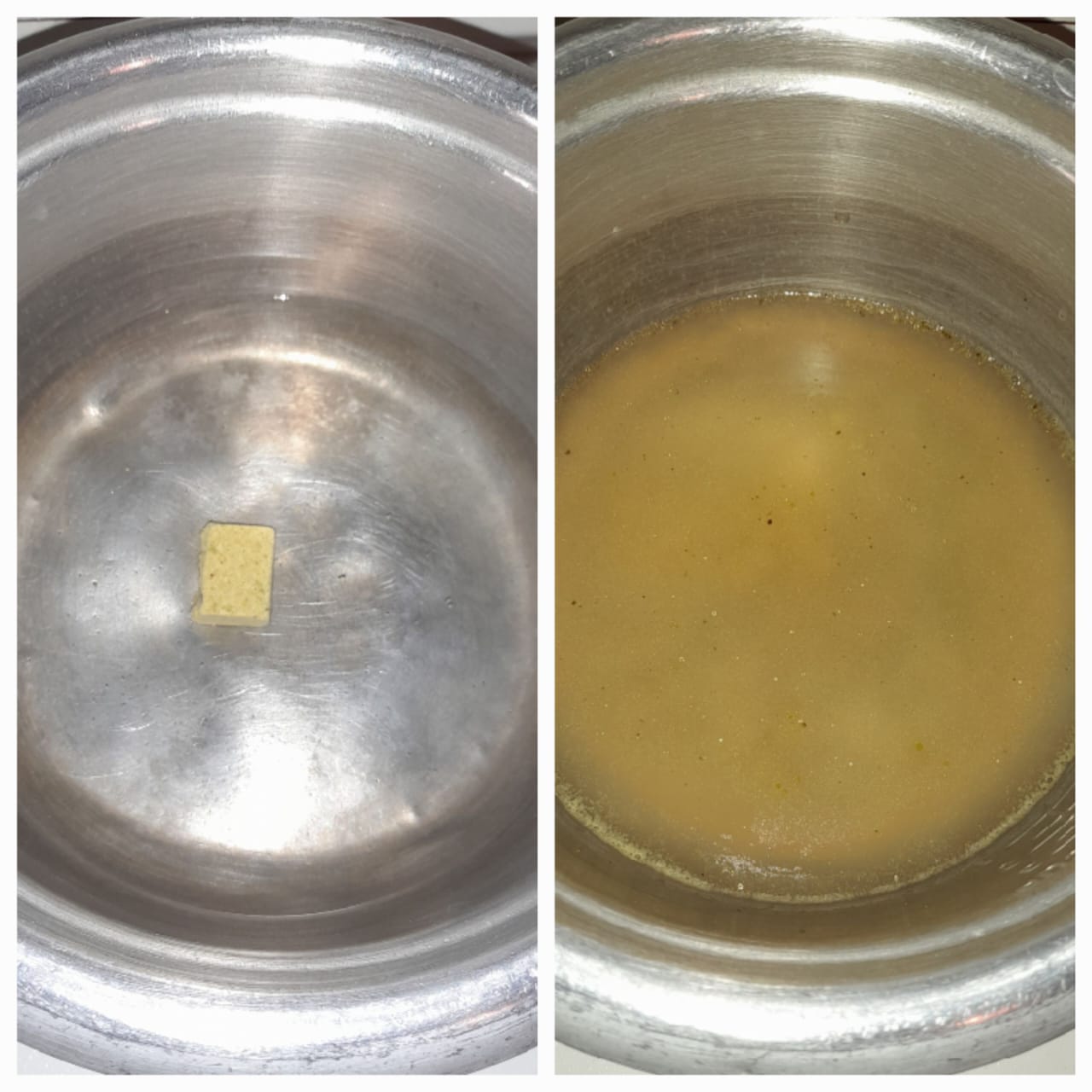 Then we place a pot with a little water, add half a tablet of dehydrated chicken broth, let it boil until it dissolves completely. Let rest.