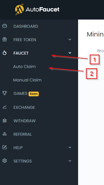 Once converted then you want to go to Faucet section and choose Auto Claim