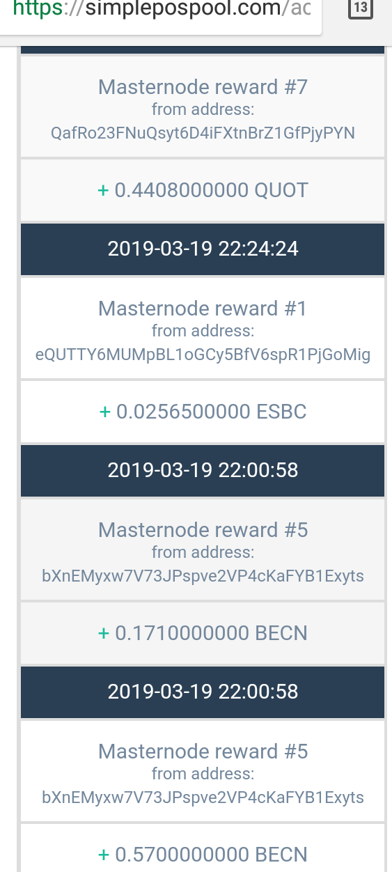 These are my daily rewards from simplepospool and its pretty awesome. The rewards will depends on how much you have deposited on the site. The bigger amount of coins you hold the bigger is the daily rewards.