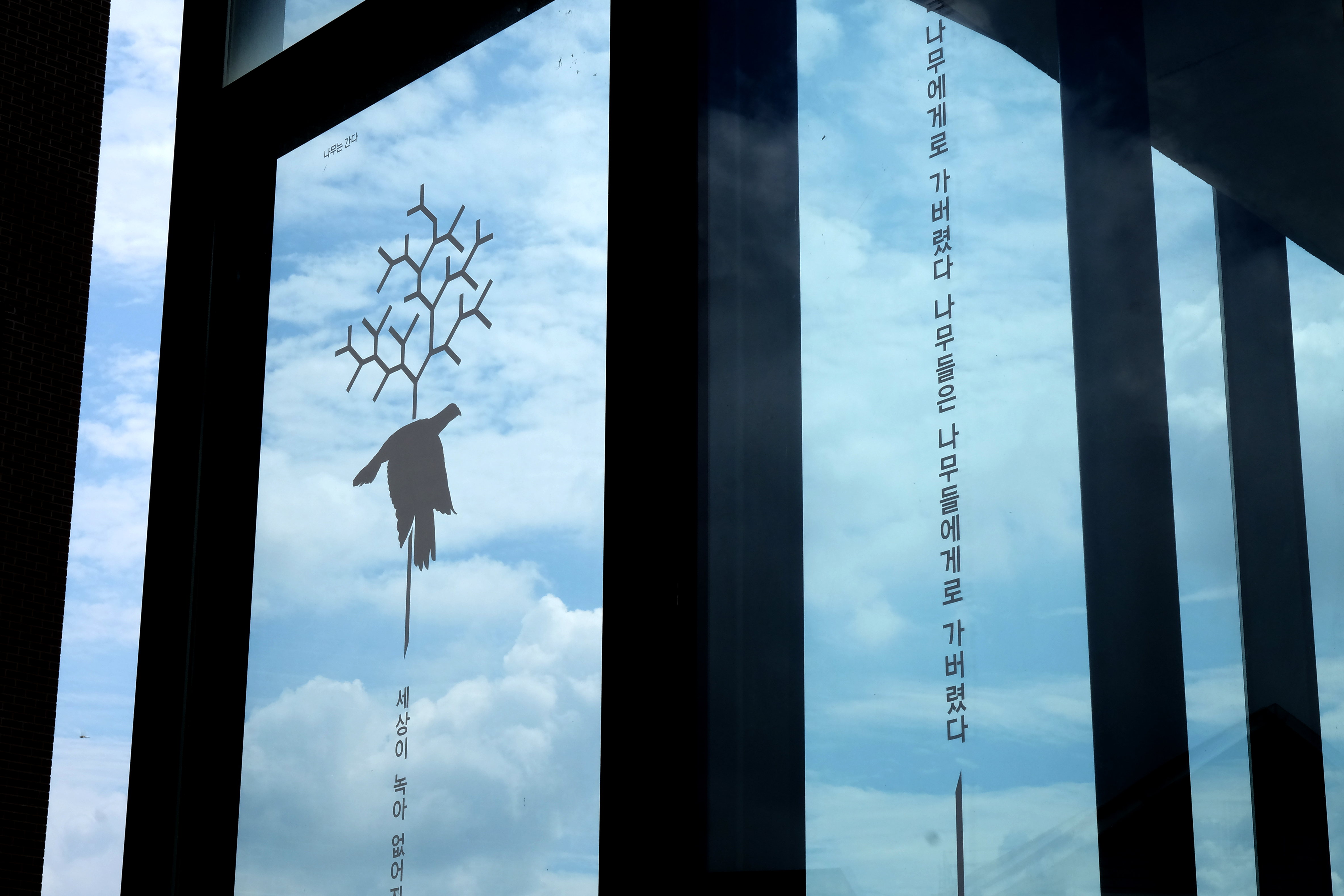 시.타 2018 - 전시 ② 이영광 <나무는 간다> / 민병걸patipatipati (54)in #pati • 8 years ago <시와 타이포그라피 잔치 2018> 전시 ② 이영광 <나무는 간다> / 민병걸 올해 시와 타이포그라피 잔치의 전시로, 12명의 그래픽 디자이너들이 12개의 한국 시와 각각 연결되어 출판도시의 출판사, 작업장 등 곳곳에 시트 작업으로 시를 표현하였습니다. . 시와 타이포그라피의.. 파주출판도시 작업2. 시: 이영광 <나무는 간다> 작업: 민병걸 곳: 명필름아트센터(경기도 파주시 회동길 530-20) #kr #typography #photography #design