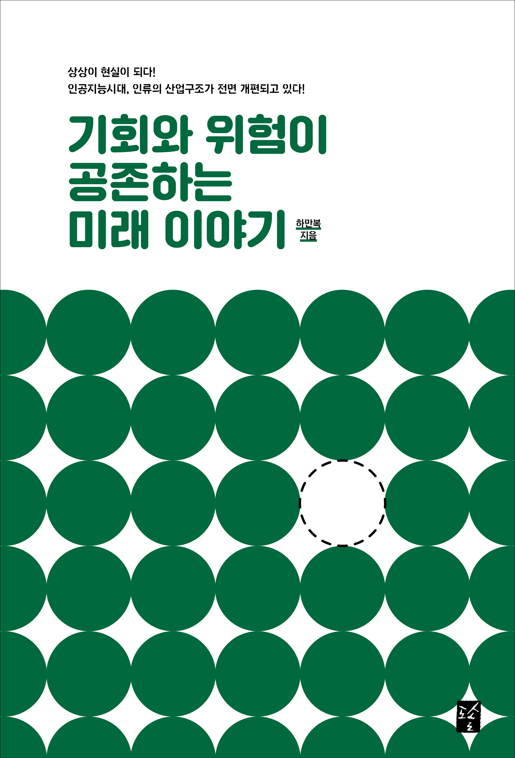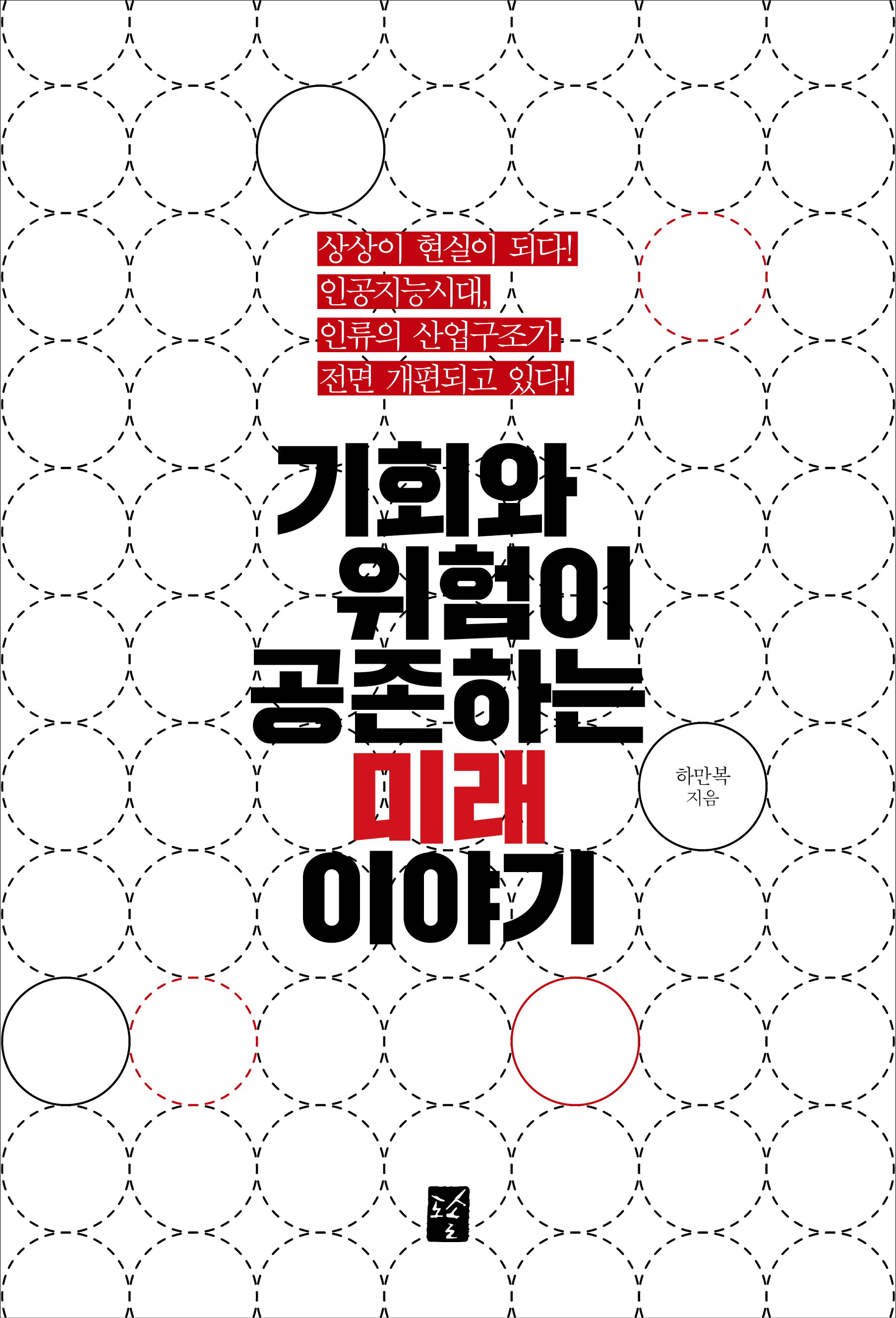 book cover / 기회와 위험이 공존하는 미래 이야기rimhahan (46)in #pati • 7 years ago (edited) <기회와 위험이 공존하는 미래 이야기 / 도솔출판사> 2016년, 1학년 때 작업한 책의 표지 디자인입니다. 책의 표지와 장페이지, 본문의 그래프 작업을 진행했습니다. 첫번째가 책의 최종 표지 디자인이고, 두번째부터 마지막까지는 디자인 시안입니다. ai의 등장으로 사람들의 자리가 줄어들거나 없어질 수도 있지만 공존할 수도 있다는 내용을 테두리에 변화를 준 동그라미의 나열로 표현하고자 했습니다. #kr #typography #kr-art #kr-book
