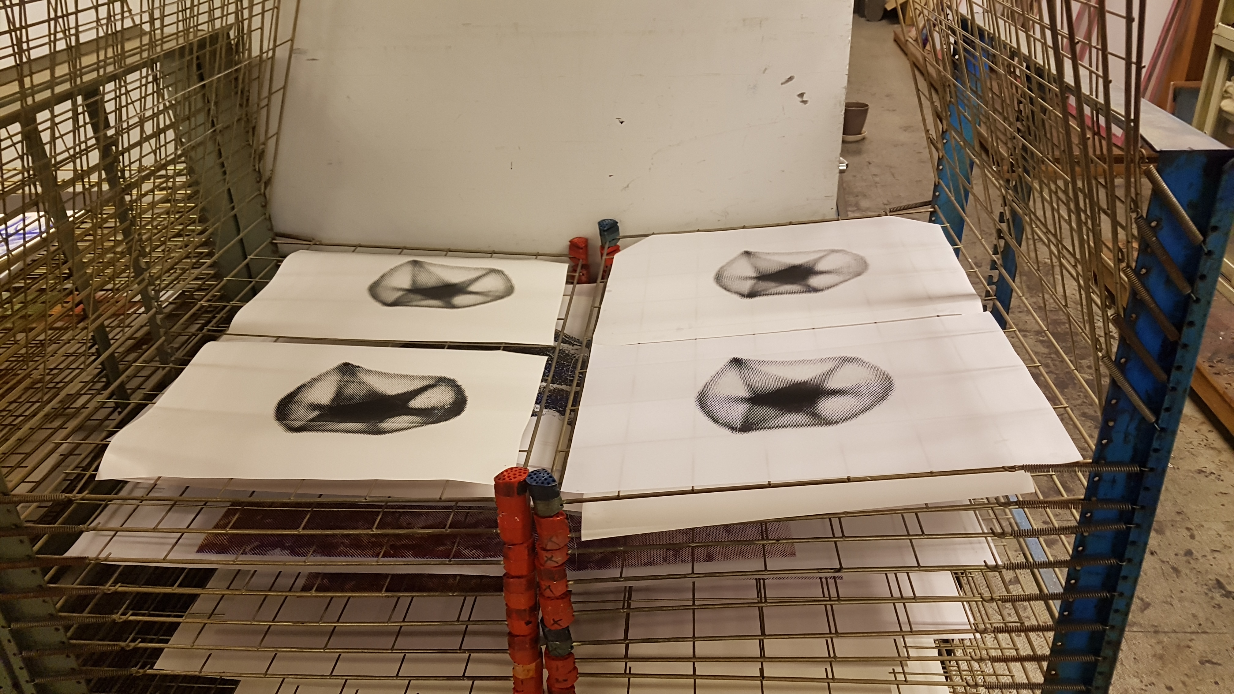 PaTI 한배곳2_판화_'소행성 M61816204'wallo-b (47)in #pati • 7 years ago 저번 학기 단편영화 수업에서 주제로 삼았던 소행성을 판화라는 기법으로 다시 한번 현실세계로 가지고 왔다. 이 작업이 판화여야만 하는 이유는 뭔지, 판화이기 때문에 가능한 것은 무엇인지에 대해 계속 생각하면서 여러가지 방법들을 시도해보았다. 이 수업을 한 줄로 요약하자면 '형식의 제한이 가져다 주는 사고의 확장' 쯤으로 표현할 수 있겠다. #kr-design #kr-artwork #silkscreen #kr-art
