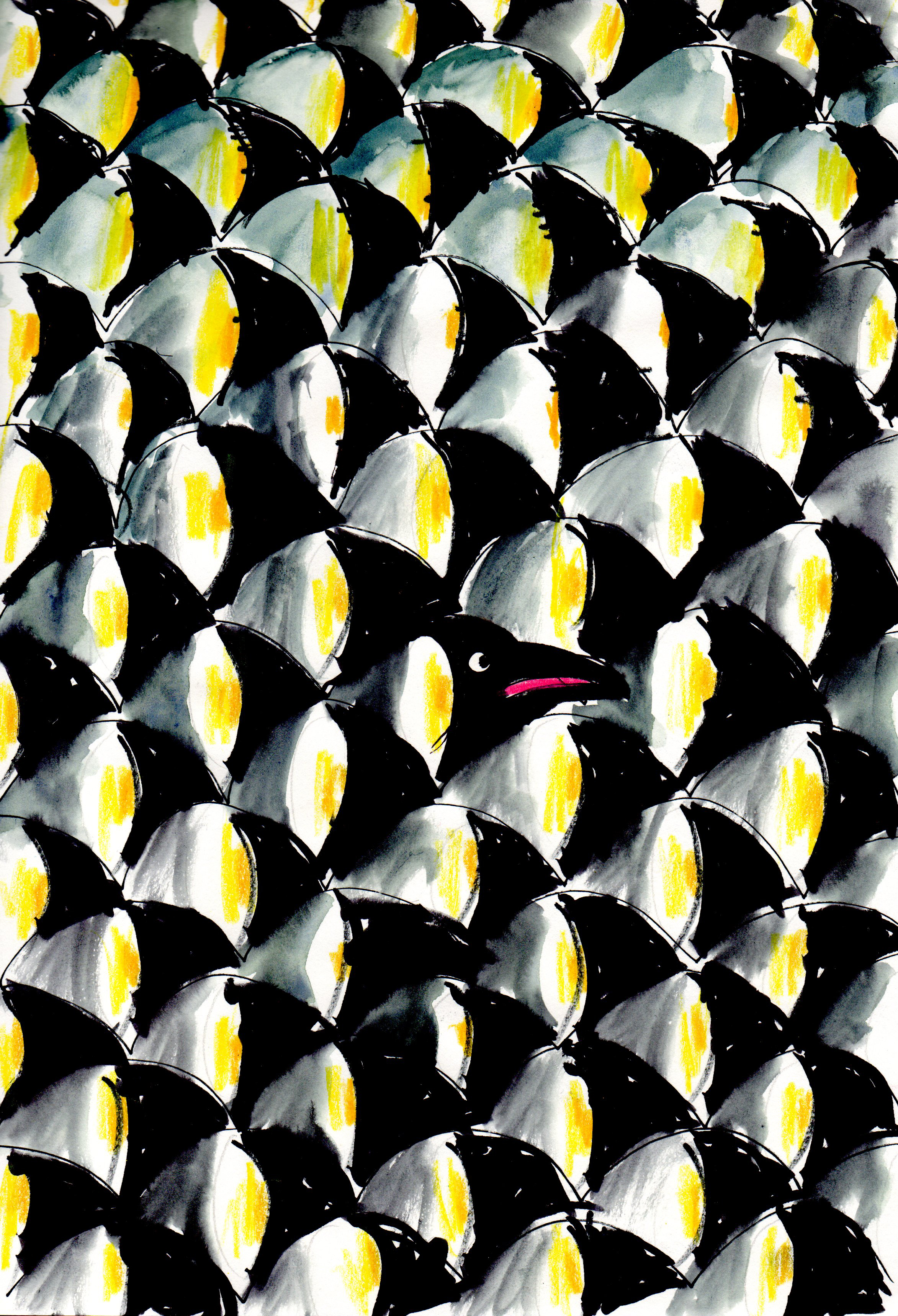 PaTI 2018 ㅍㅍㅁㅍ_황제펭귄 패턴wallo-b (47)in #pati • 8 years ago (edited)밴드 황제펭귄의 작업 방식은 자유롭다 못해 통제 불능이다. 하지만 시간이 흐름에 따라 서로의 목소리에 귀 기울이며, 조금씩 부족한 각자가 서로의 부족한 부분을 채워주기 시작했다. 그 모습은 끊임없이 자리를 바꿔가며 서로의 체온으로 남극의 혹한을 견디는 펭귄들의 모습과 닮았다. 이 방법을 허들링이라고 한다. 여기서 착안하여 펭귄들이 실제로 허들링하는 패턴을 단순화한 후 시각적으로 표현해보았다. 아래는 스케치 #kr-design #kr-artwork #patternworks #kr-art