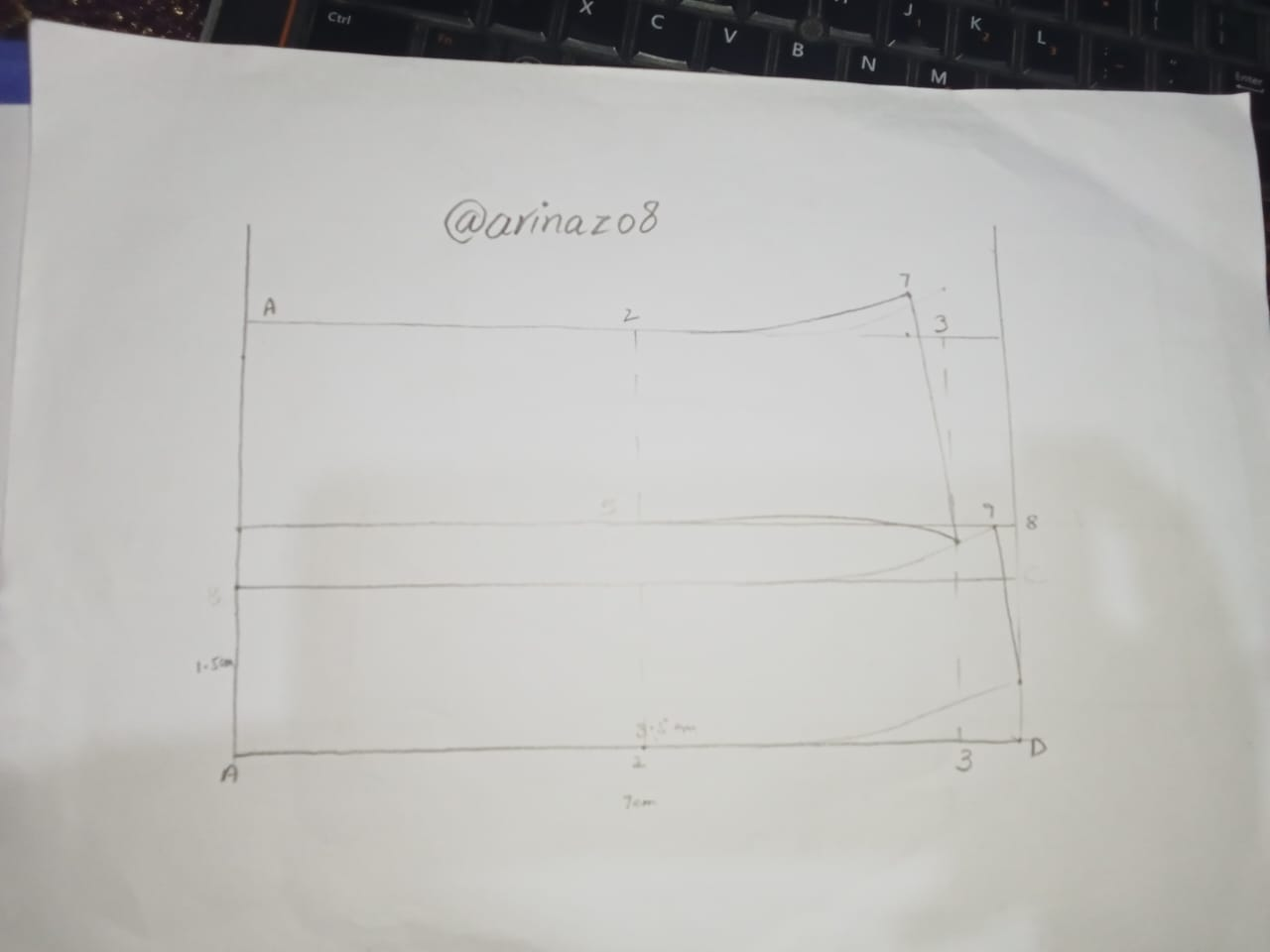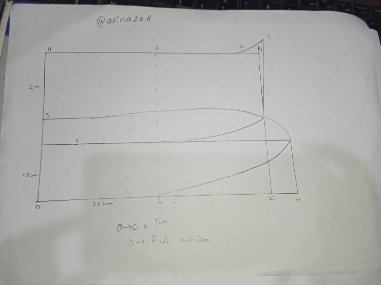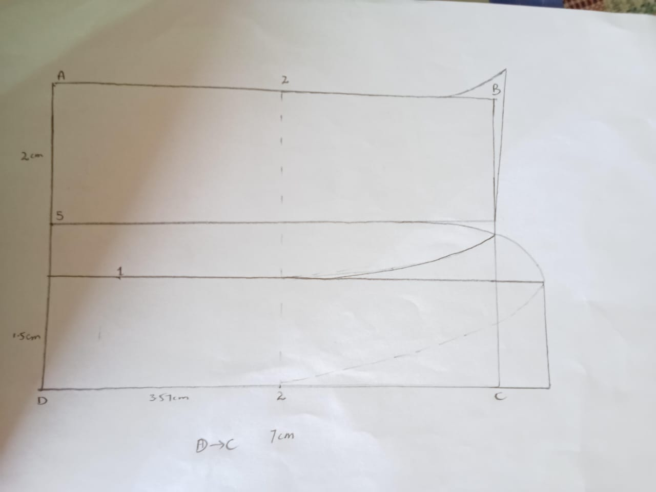 Because we are drawing And I've taken a line from D to C for that, and just like that from the top I've taken a B line that's 7 centimeters on both sides, and in addition to that, I've taken a 3.5 centimeter center. I have put a line which is a routed line that I will define half of it, then I tried to make the coler and its ban. And above I made a collar of two centimeters I've put the width and then I've made it the f-point that I've made, and I've tried it there, and I've given it a ban shape