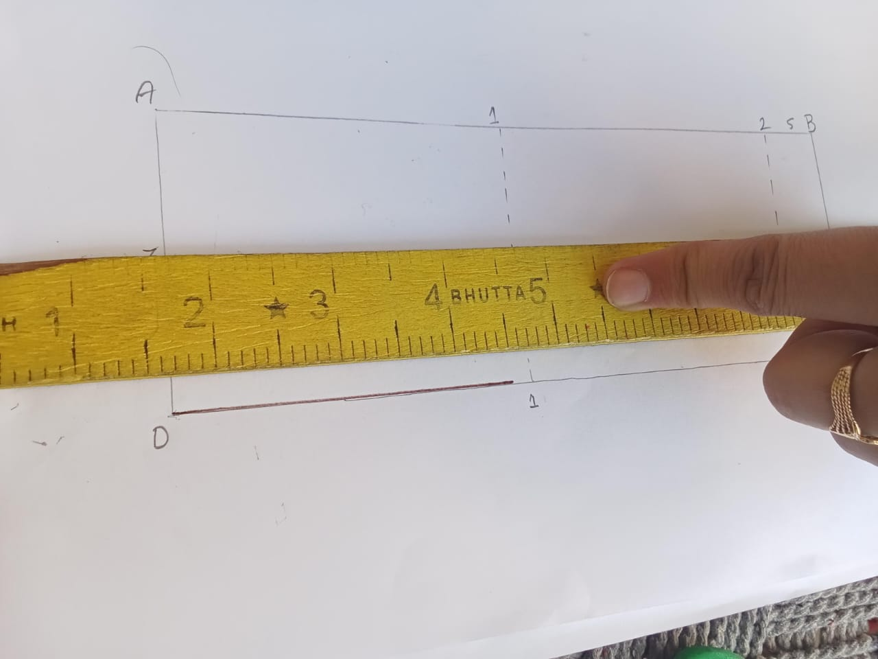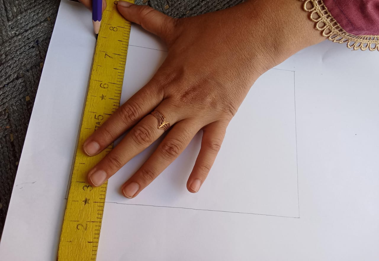 So, first of all, we have to put a line through the inchi tape, which will be 14 cm in total, because the total is 14 cm colar, and because it is double, and that's why we have just 7cm. So we're going to take it together because if we open it up to double, 14 is halved and the side becomes centimeters, so we're going to take it 7 centimeters.