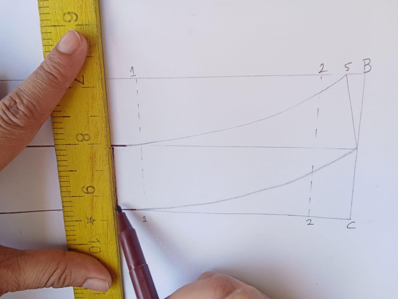 This cooler is very easy to make because it is not that difficult to cut but we can make it in two ways. It is to be made on a ban shape. While making a regular shape, I have taken care to keep the length of it in cm and put a line in the center which is the middle of it. And after that I number one to two On the side of the number it is made on it but on this side it is made a little higher and from a number towards the D point I have taken out a tip which is a little lower because while making the cooler we have to take care that The top point is slightly pointed and the bottom point is slightly less pointed