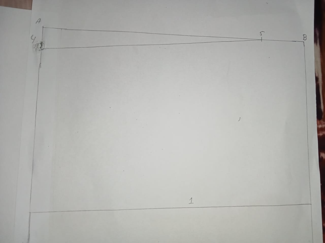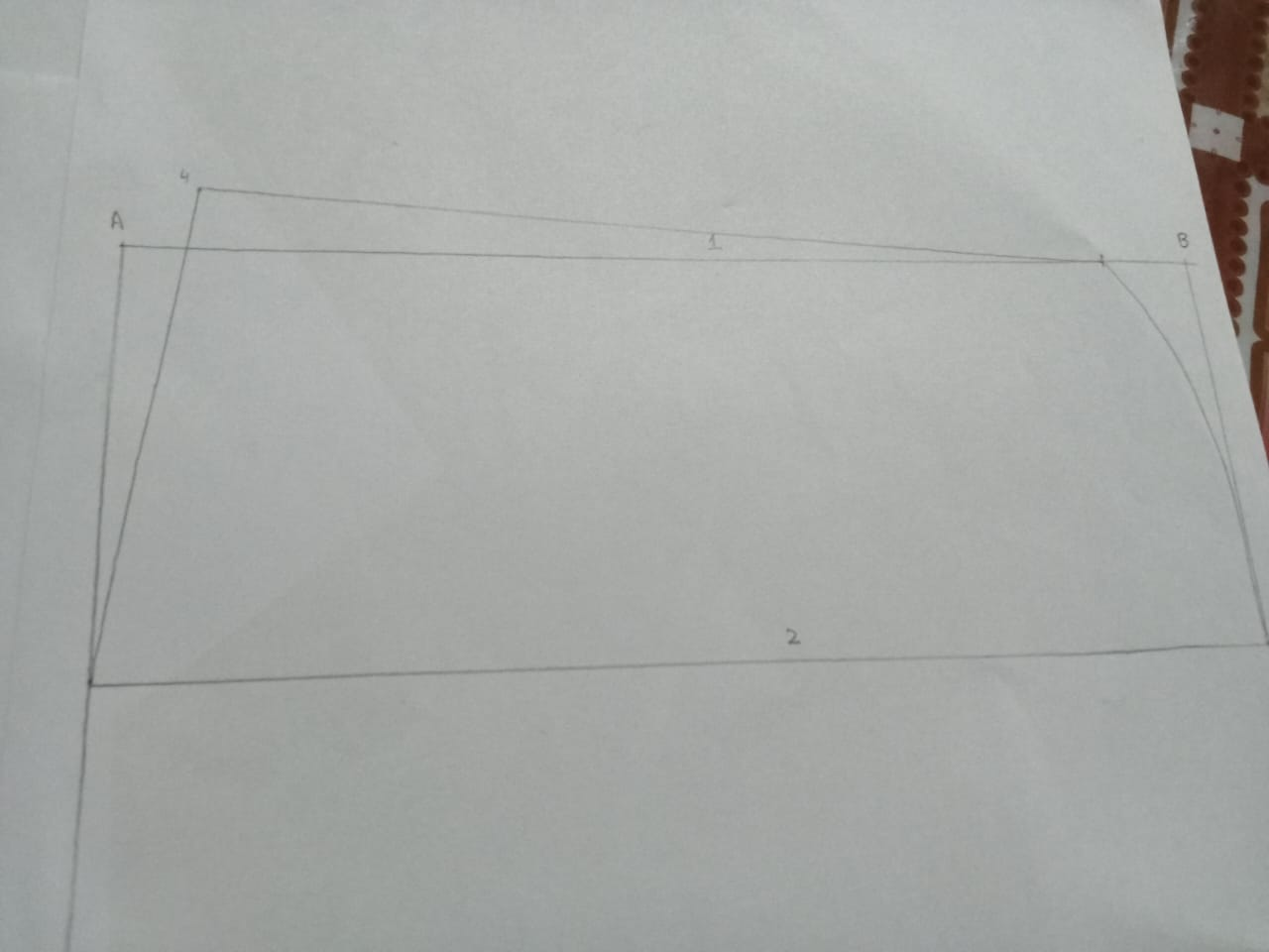 Just like that, we have four edges, and I've named the edges ABCD. Now I've named the first box 1. and the other one is called 2 in the same way I have made a point in the middle of B which I have given the number 5. We have taken the measurement that That's Waste's margin, and just like that, I've made a curve while we've been on lines five through B, and that's the line that goes to my seven-point, which I've done on the line and a point 8 on the D line.