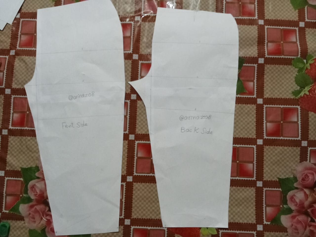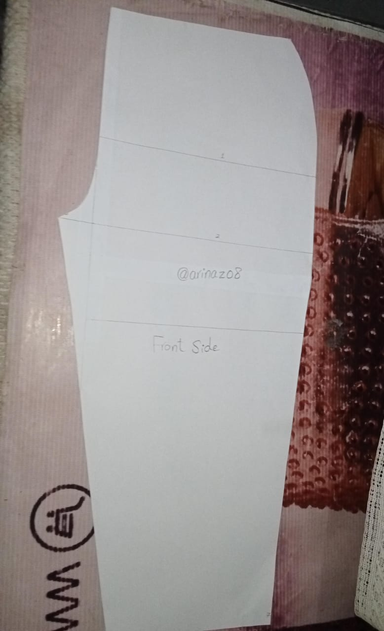 So now I have completed the cutting of both the front side and the back side, as you can see it is exactly the shape of the pant and now we will sew it according to our measurements. This is the cutting that I painted on my front side, what about the back side, I hope you all like my work