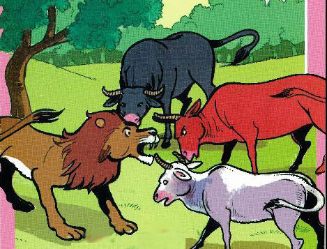 Tus tsov ntxhuav roared thiab hais tias: "Phoojywg ntawm ib tus phooj ywg!" Ua li cas nws muaj peev xwm tias ib tug tsov ntxhuav ua kev phooj ywg nrog ib tug nyuj? Tsis muaj teeb meem ntau npaum li cas tus liab pliv-xim av nyuj thov thiab entreated, tus tsov ntxhuav tsis txais nws cov lus.Tus tsov ntxhuav tau tawm tsam cov nyuj.