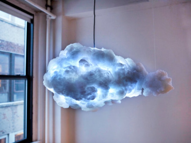 This cloud is a design lamp from Kaufman Mercantile, which not only illuminates the room, but also produces thunder-characteristic sounds: thunder, rain noise. You can also adjust the degree of brightness and color of the cloud itself.