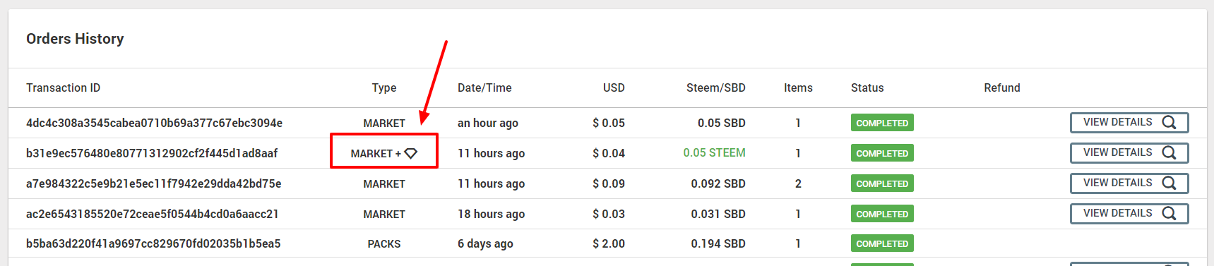 As you can see it's marked as a different transaction type.