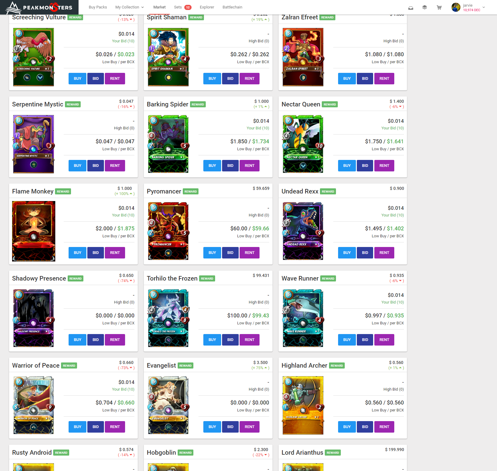 • We've moved the cards that don't have cards for sale to the END of the list previously they were showing $0 and showed up at the beginning of the market list even without any cards for sale