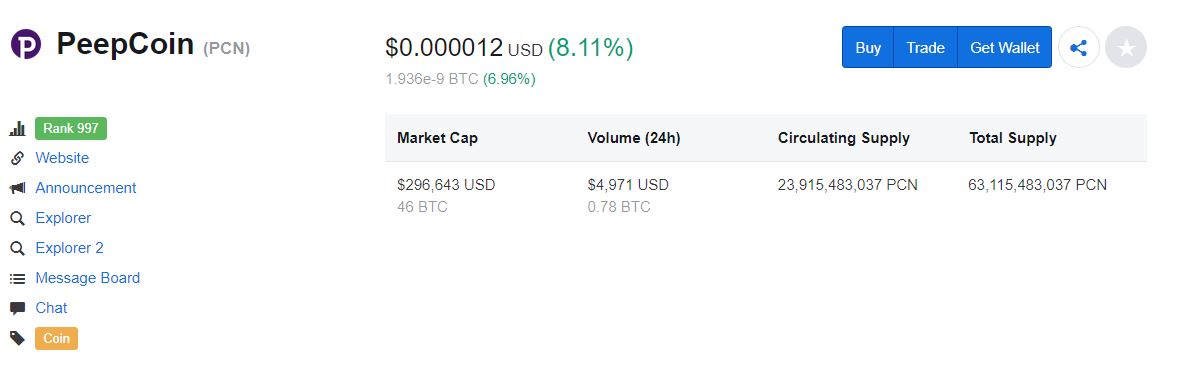 Added Peepcoin (PCN) to my portfoliocryptofaucet (35)in #peepcoin • 8 years ago Added 20,000 Pcn to my portfolio, sold 35.85 doge #sold #dogecoin #upvote #portfolio