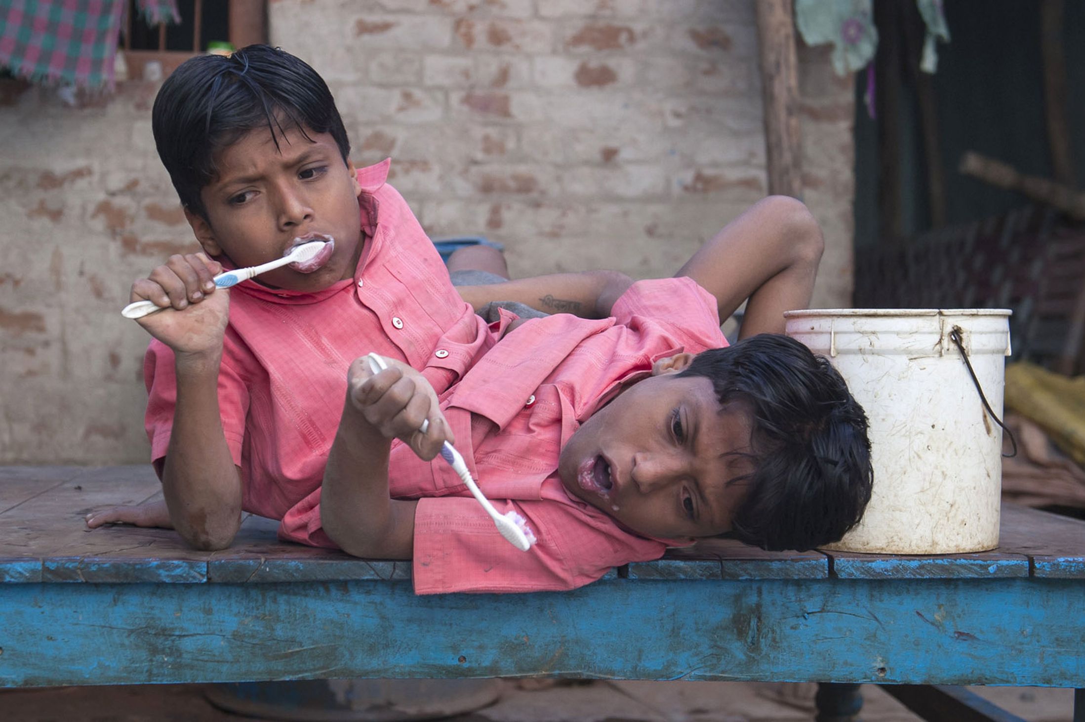 CONJOINED twins Shivanath and Shivram Sahu have found a unusual way to get to school - dropping to the floor and running like a SPIDER. The 12-year-olds, who were born joined at the waist, bare two legs and four arms and work in tandem to get around.