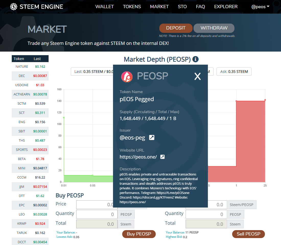 Privacy token PEOS is now trading live on Steem-Engine and can be deposited and withdrawn for a 1% fee to EOS Main Net