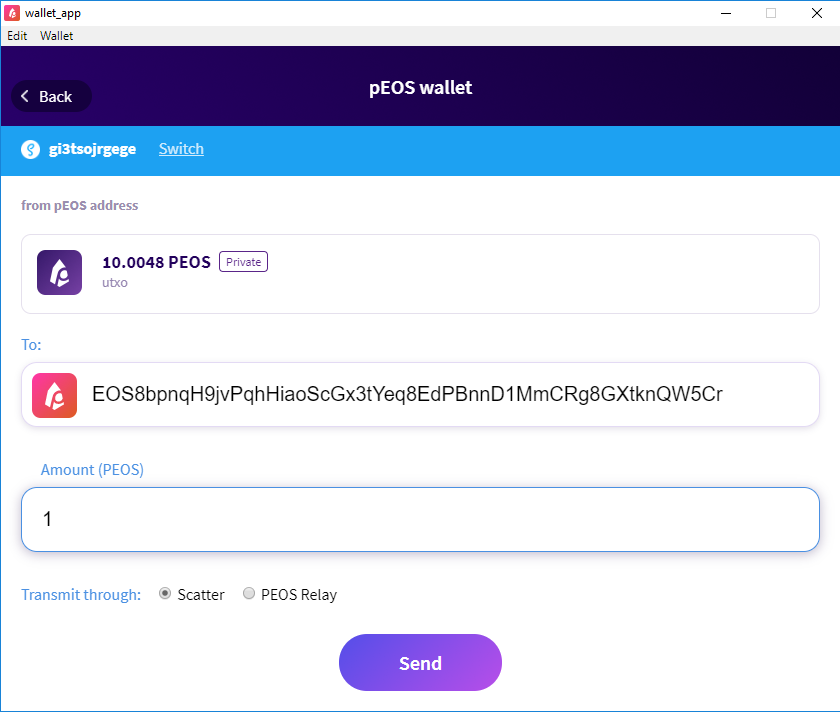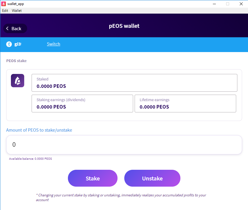 Screenshot of the PEOS Desktop Wallet